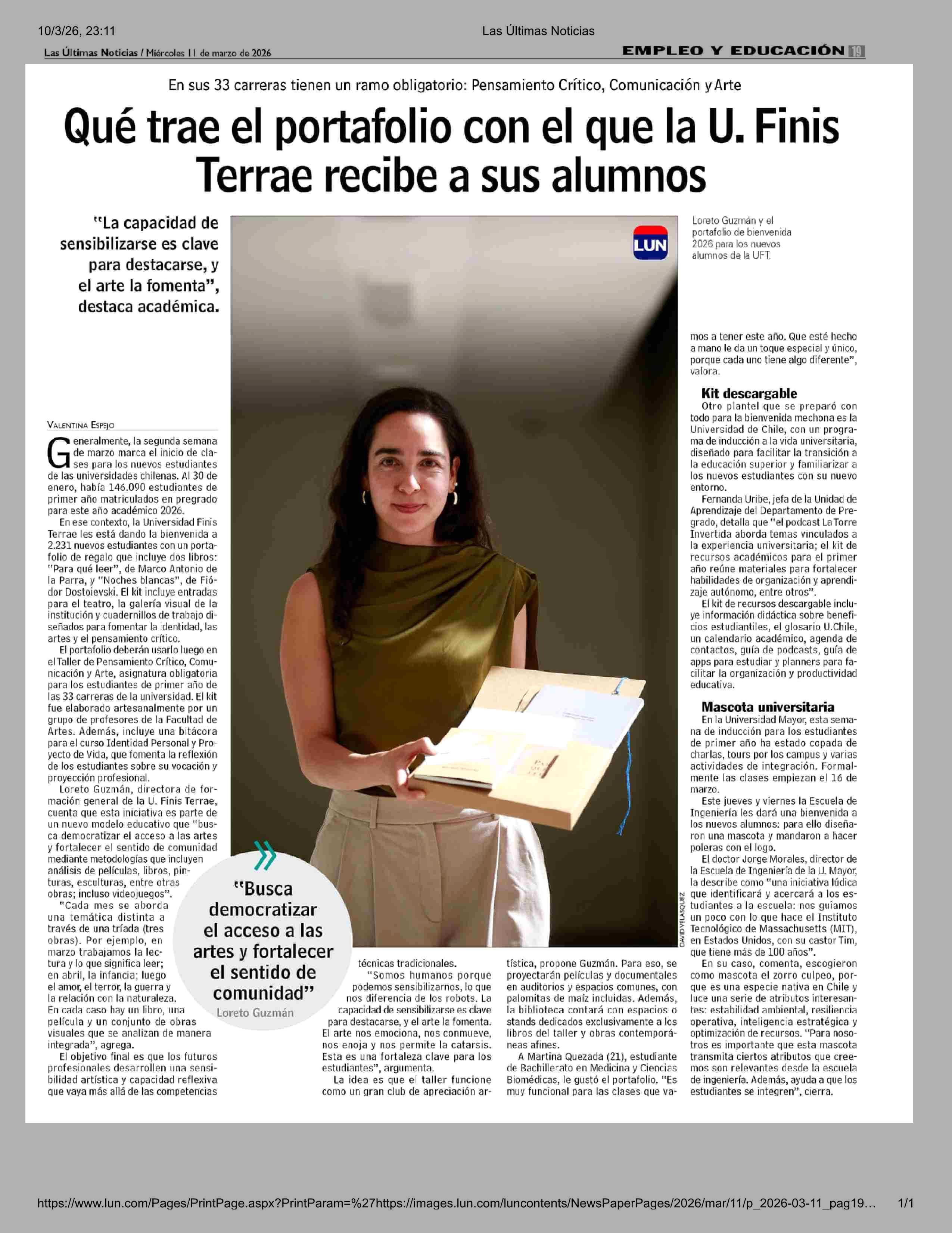 Título: Qué trae el portafolio con el que la U. Finis Terrae recibe a sus alumnos