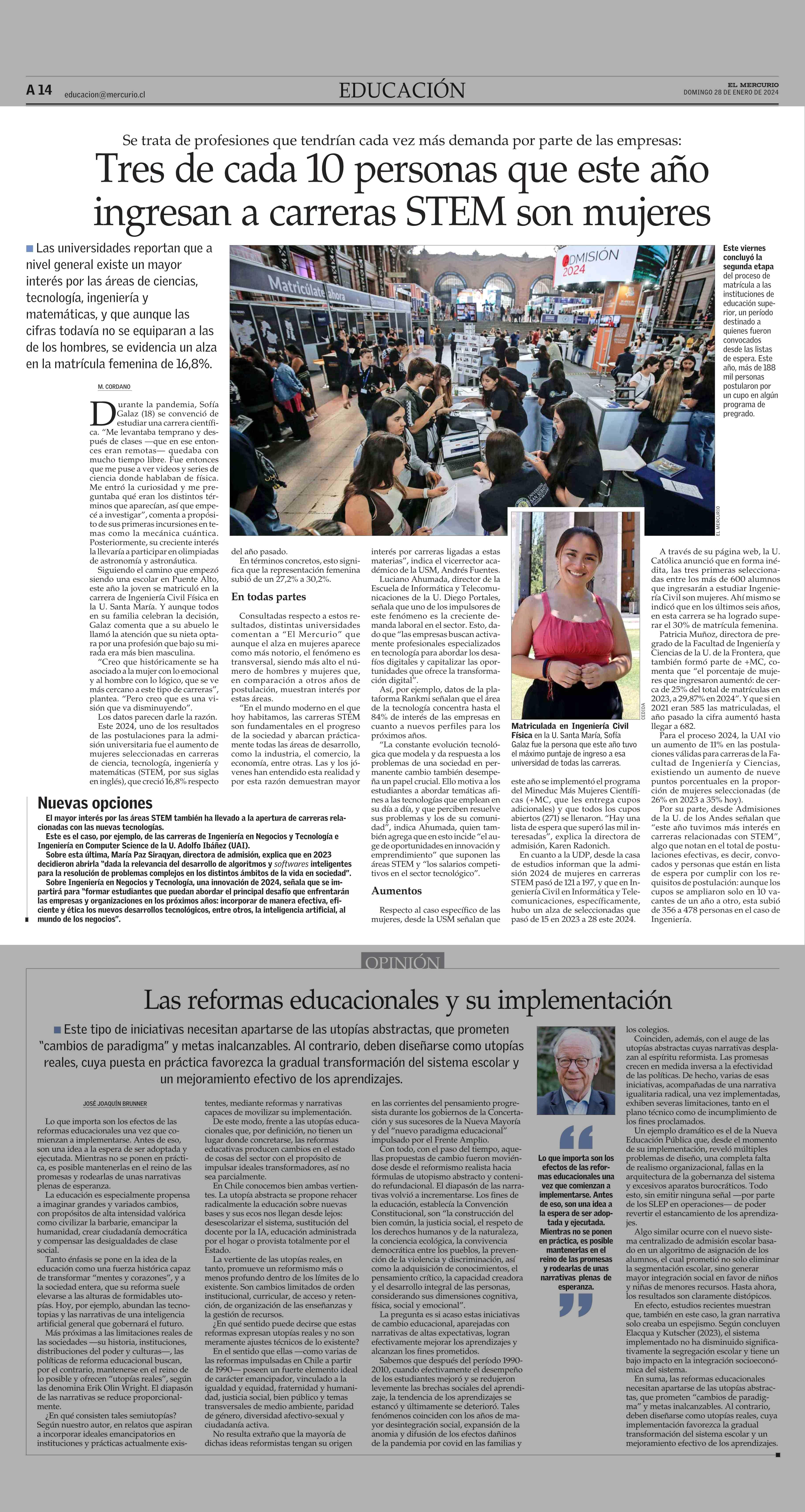 Tres de cada 10 personas que este año ingresan a carreras STEM son mujeres 28-01-2024 El Mercurio |