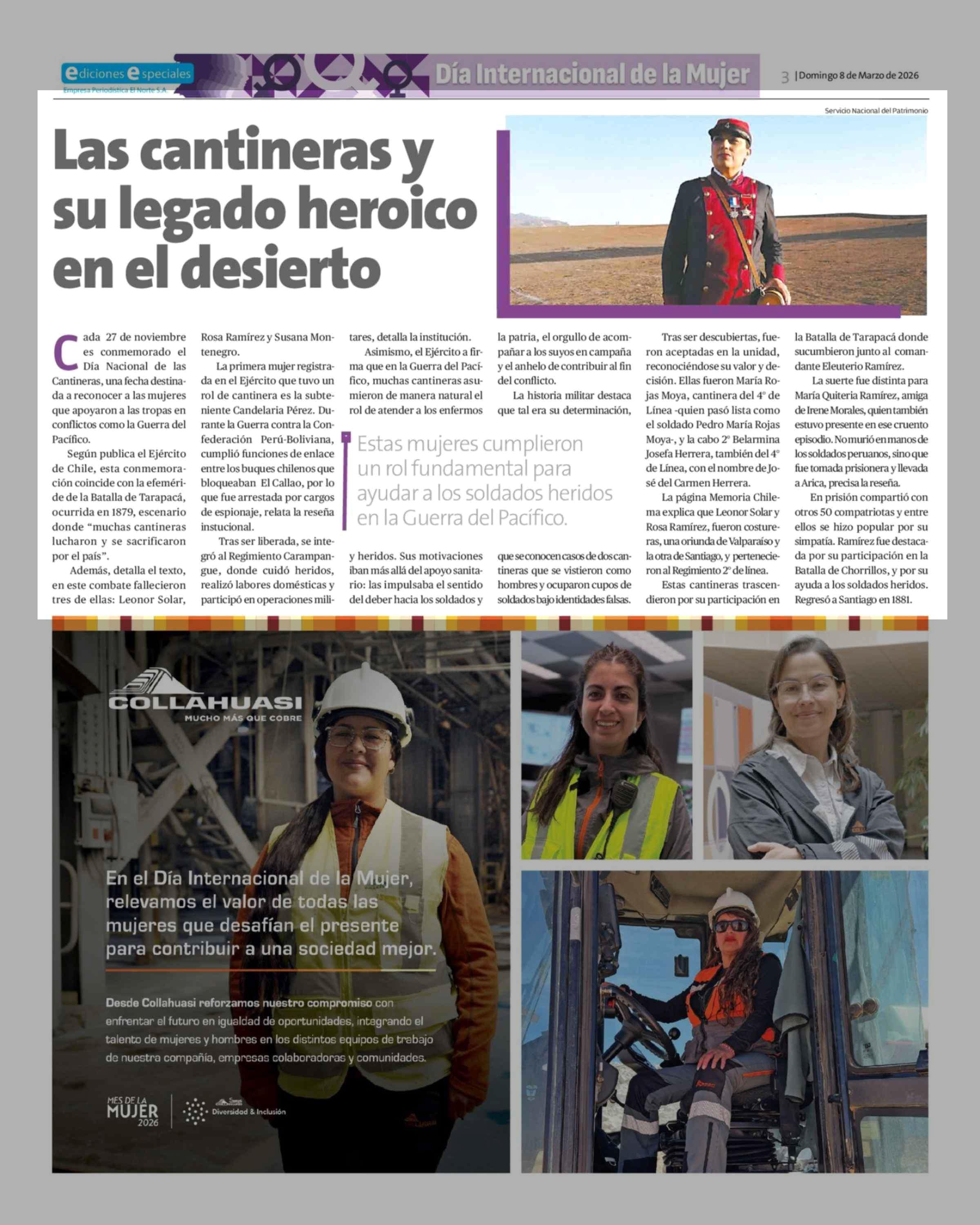Las cantineras y su legado heroico en el desierto 08-03-2026 La Estrella de Iquique |