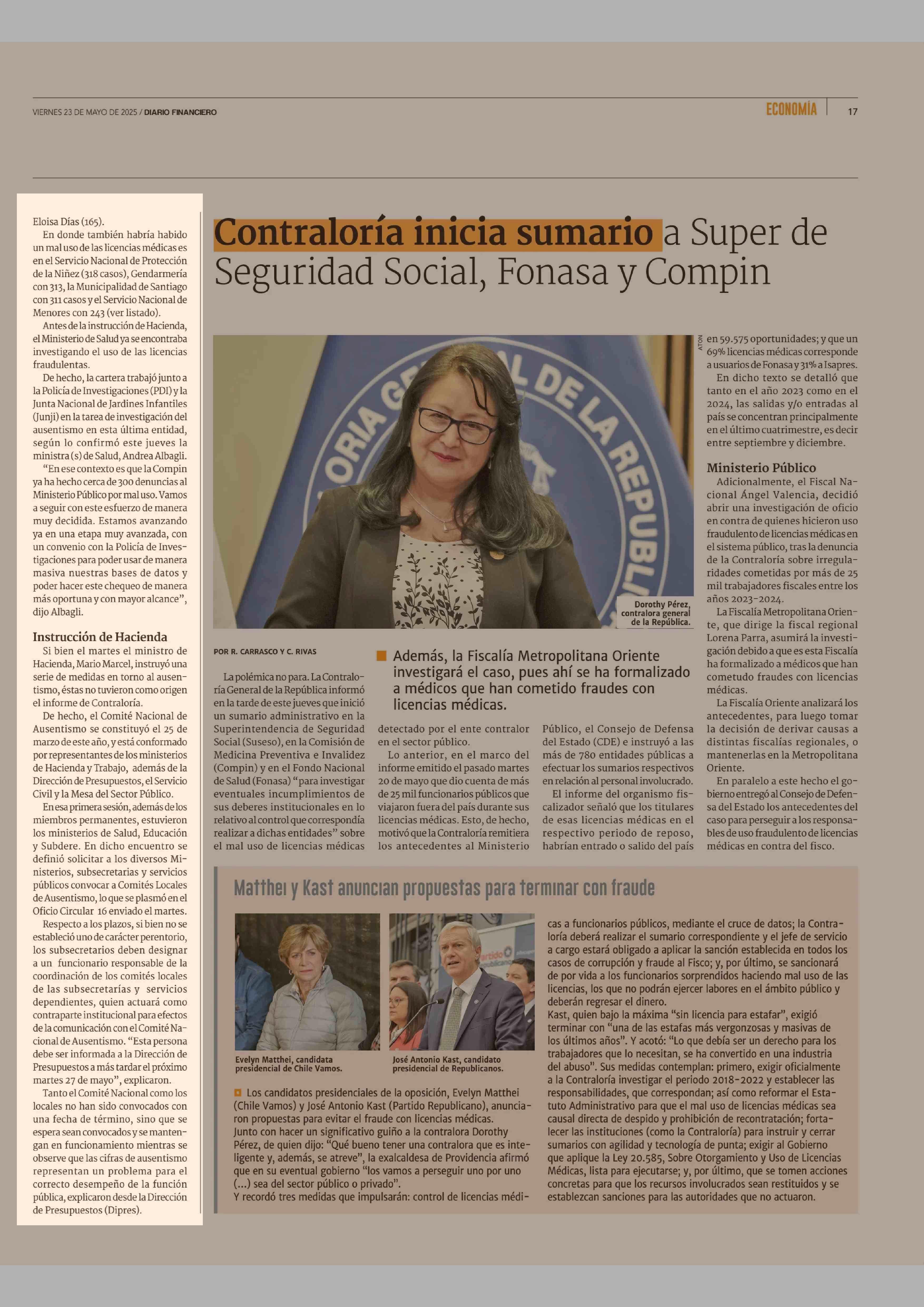 BancoEstado, Codelco y Metro se suman a hospitales entre los 50 servicios con más licencias médicas usadas para viajar 23-05-2025 Diario Financiero |