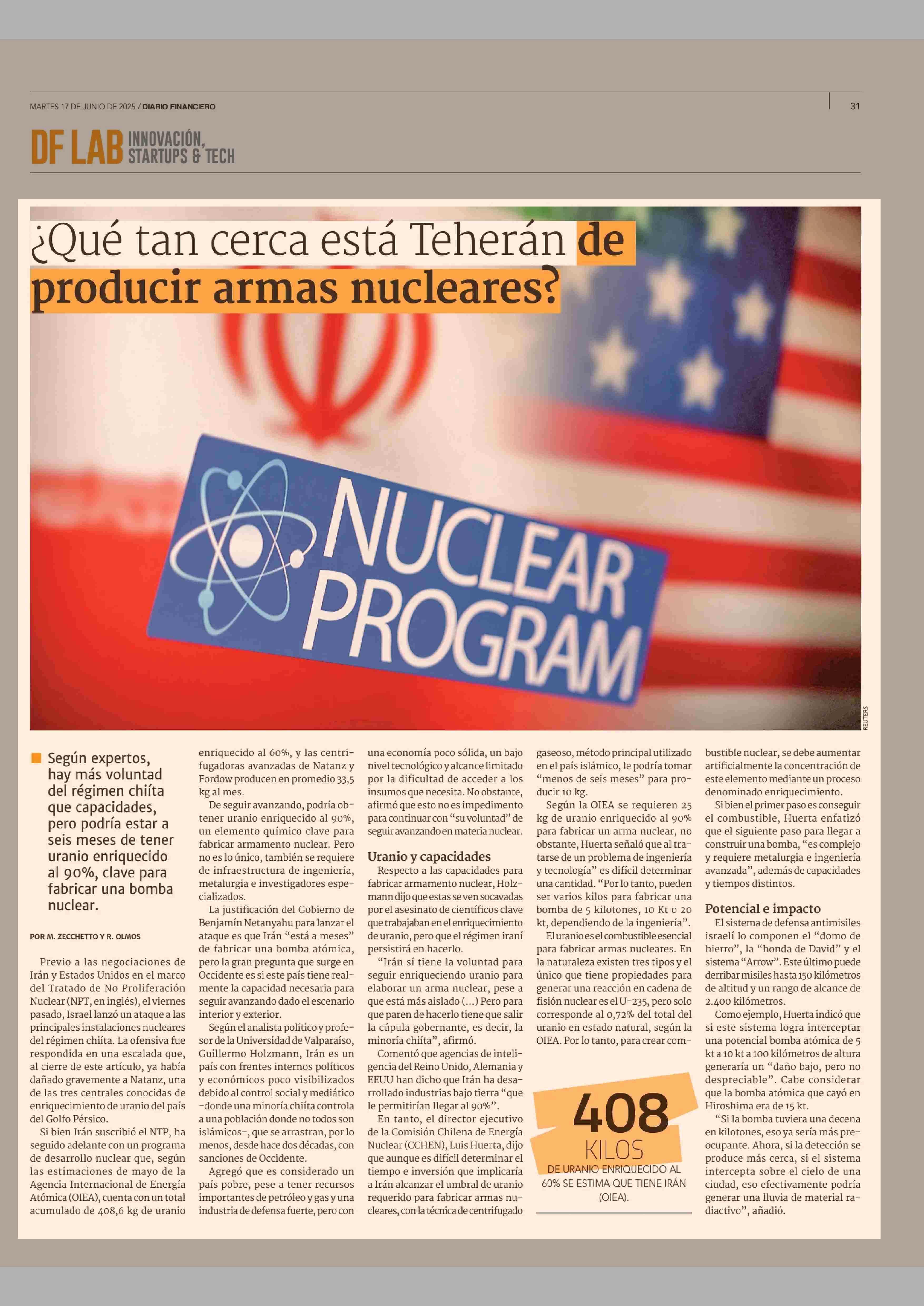 ¿Qué tan cerca está Teherán de producir armas nucleares? 17-06-2025 Diario Financiero |