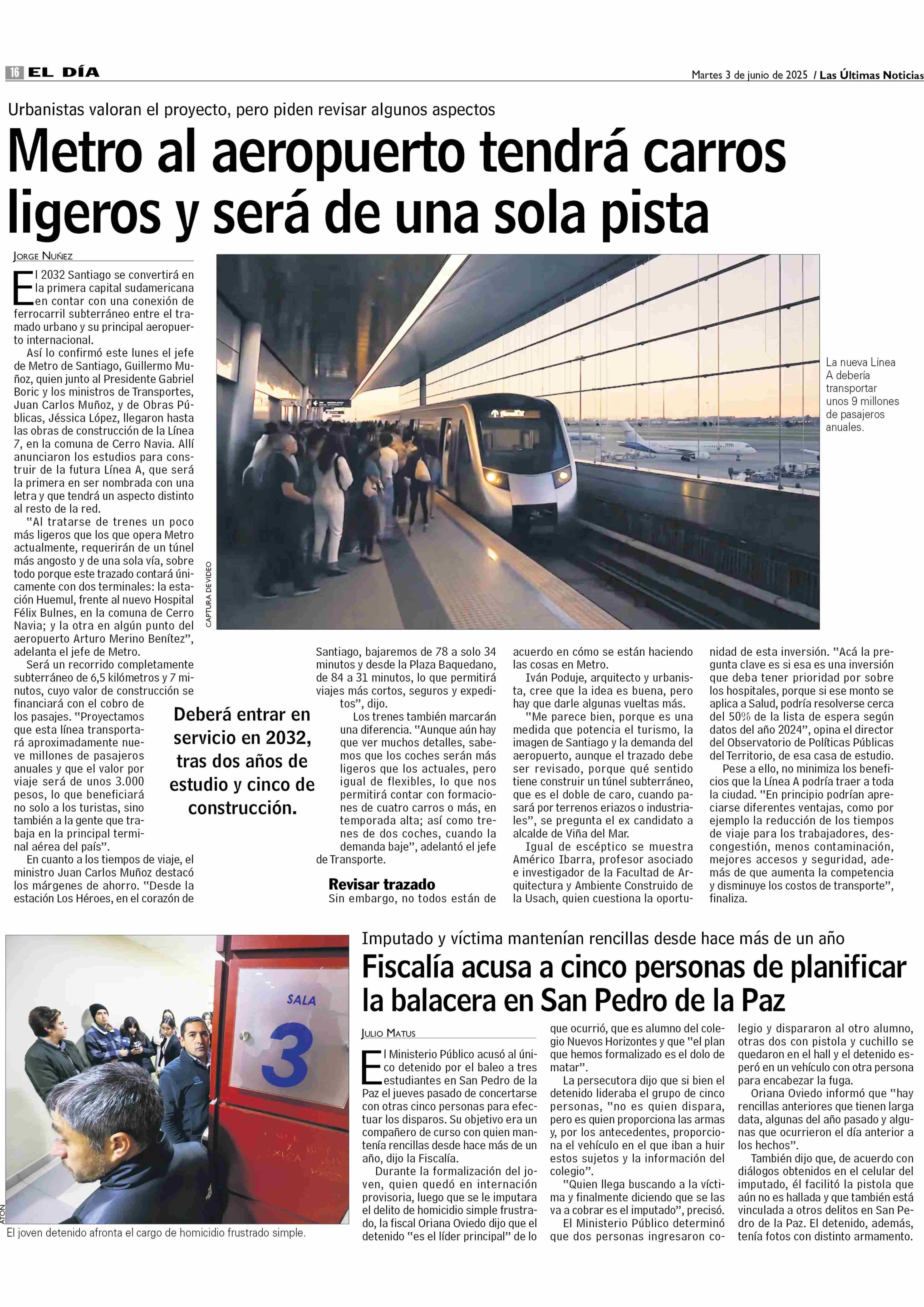 Metro al aeropuerto tendrá carros ligeros y será de una sola pista 03-06-2025 Las Últimas Noticias |