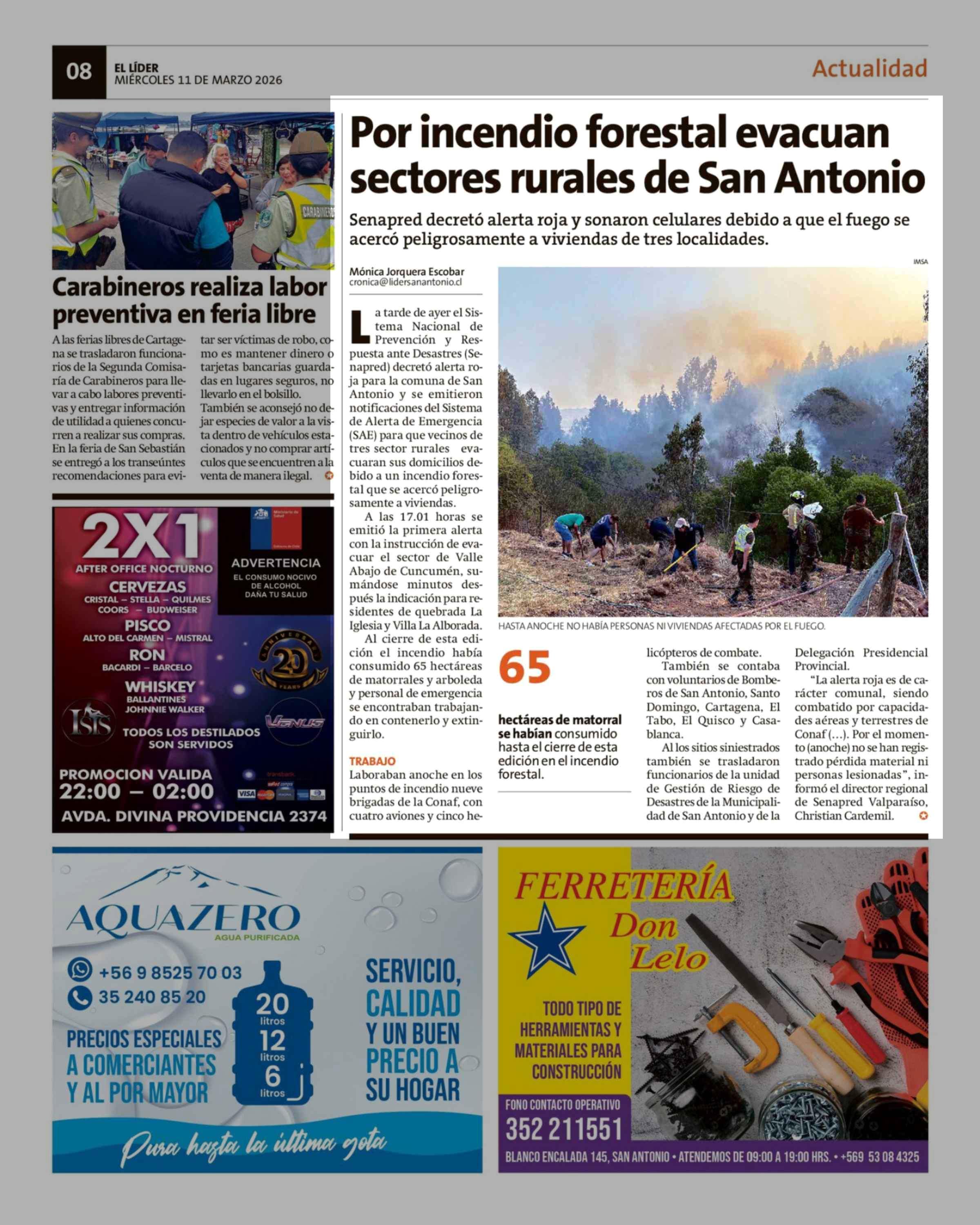 Por incendio forestal evacuan sectores rurales de San Antonio 11-03-2026 El Líder |