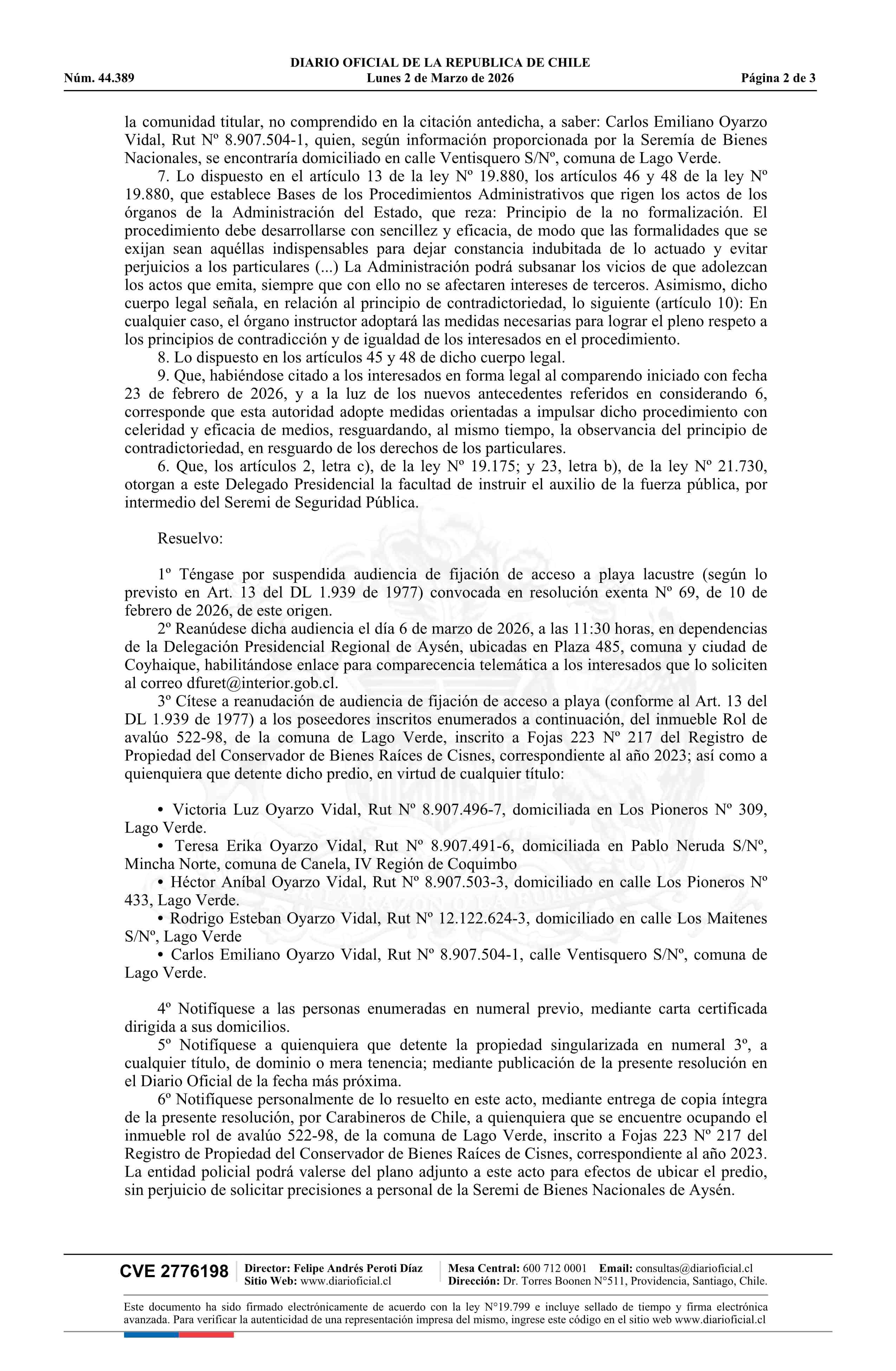 | Título: | Resolución exenta número 82, de 2026.- Cita a continuación de audiencia que indica |