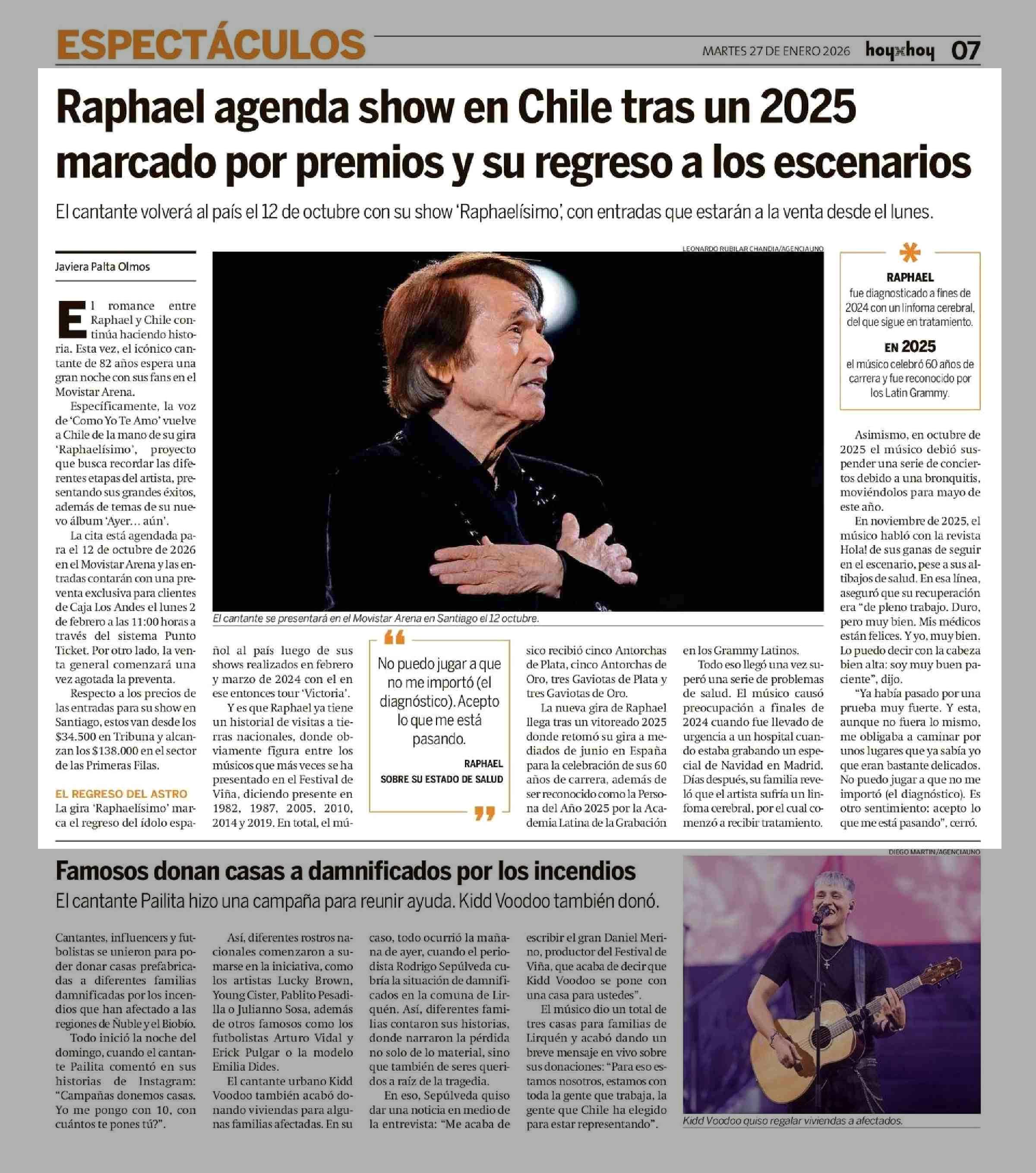 Título: Raphael agenda show en Chile tras un 2025 marcado por premios y su regreso a los escenarios