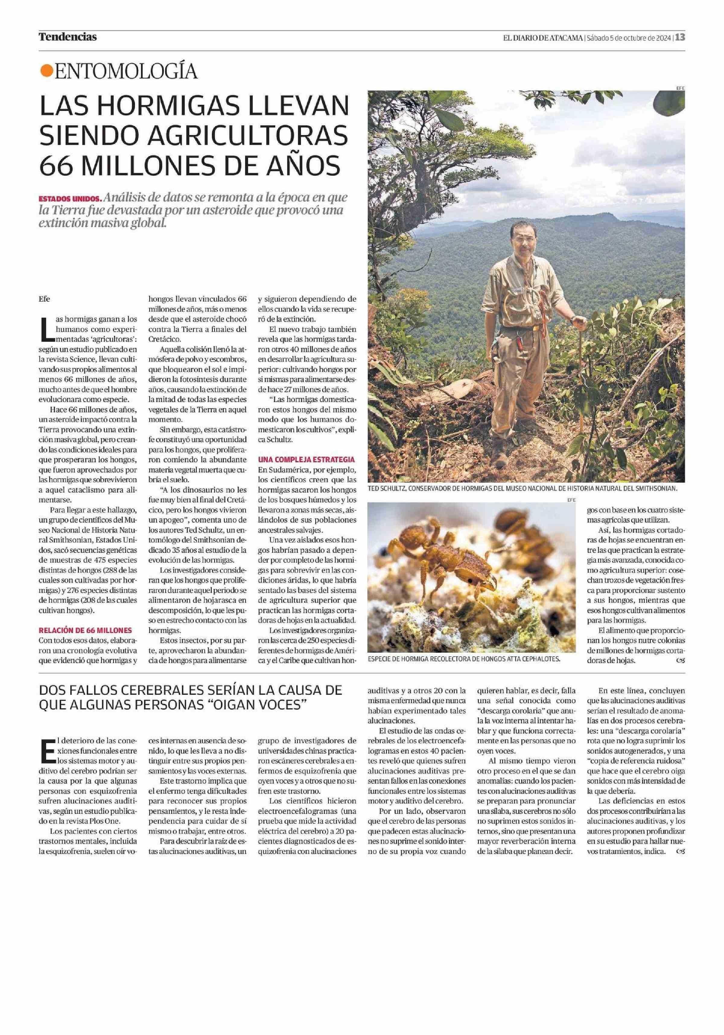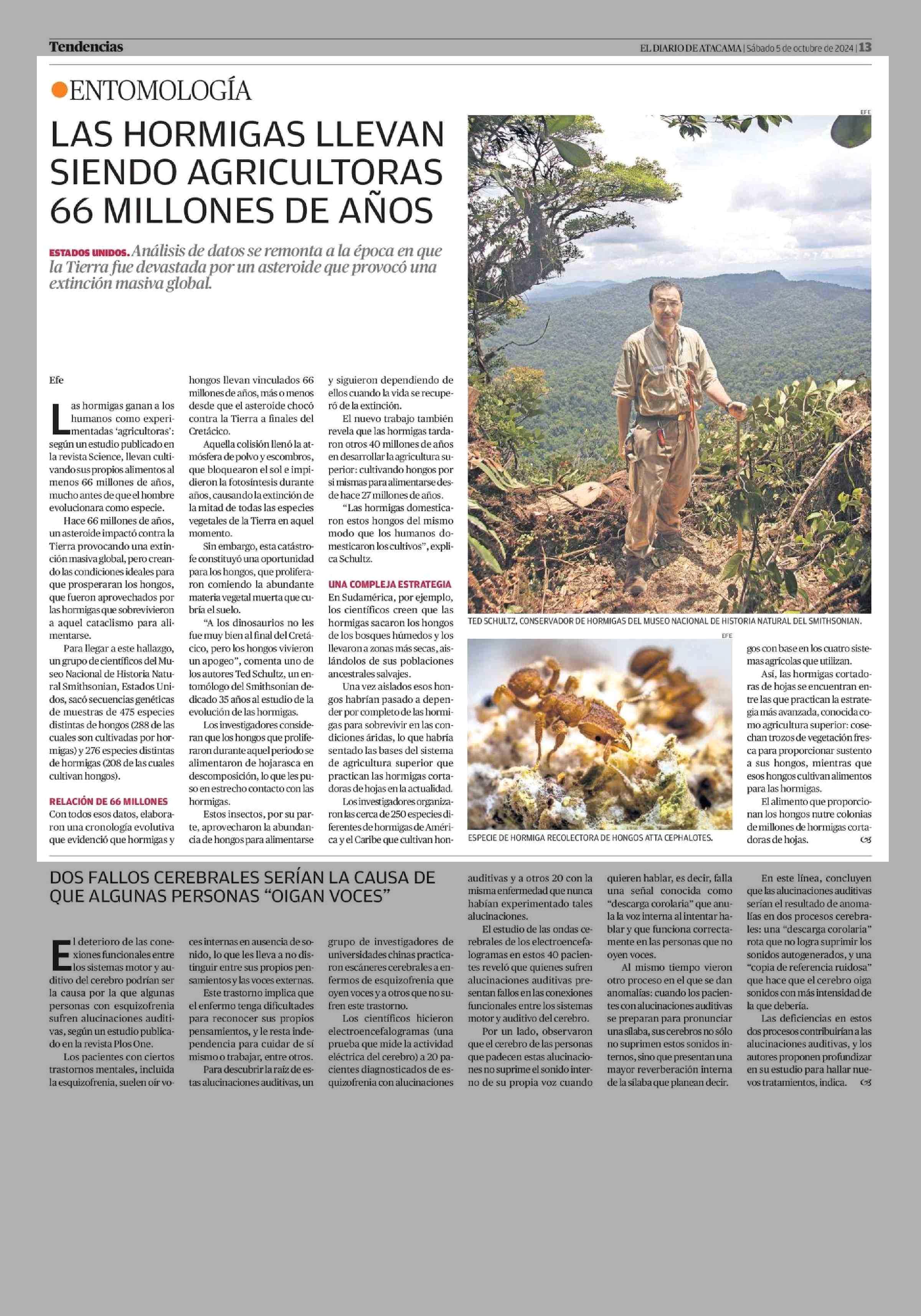 LAS HORMIGAS LLEVAN SIENDO AGRICULTORAS 66 MILLONES DE AÑOS 05-10-2024 El Diario de Atacama |