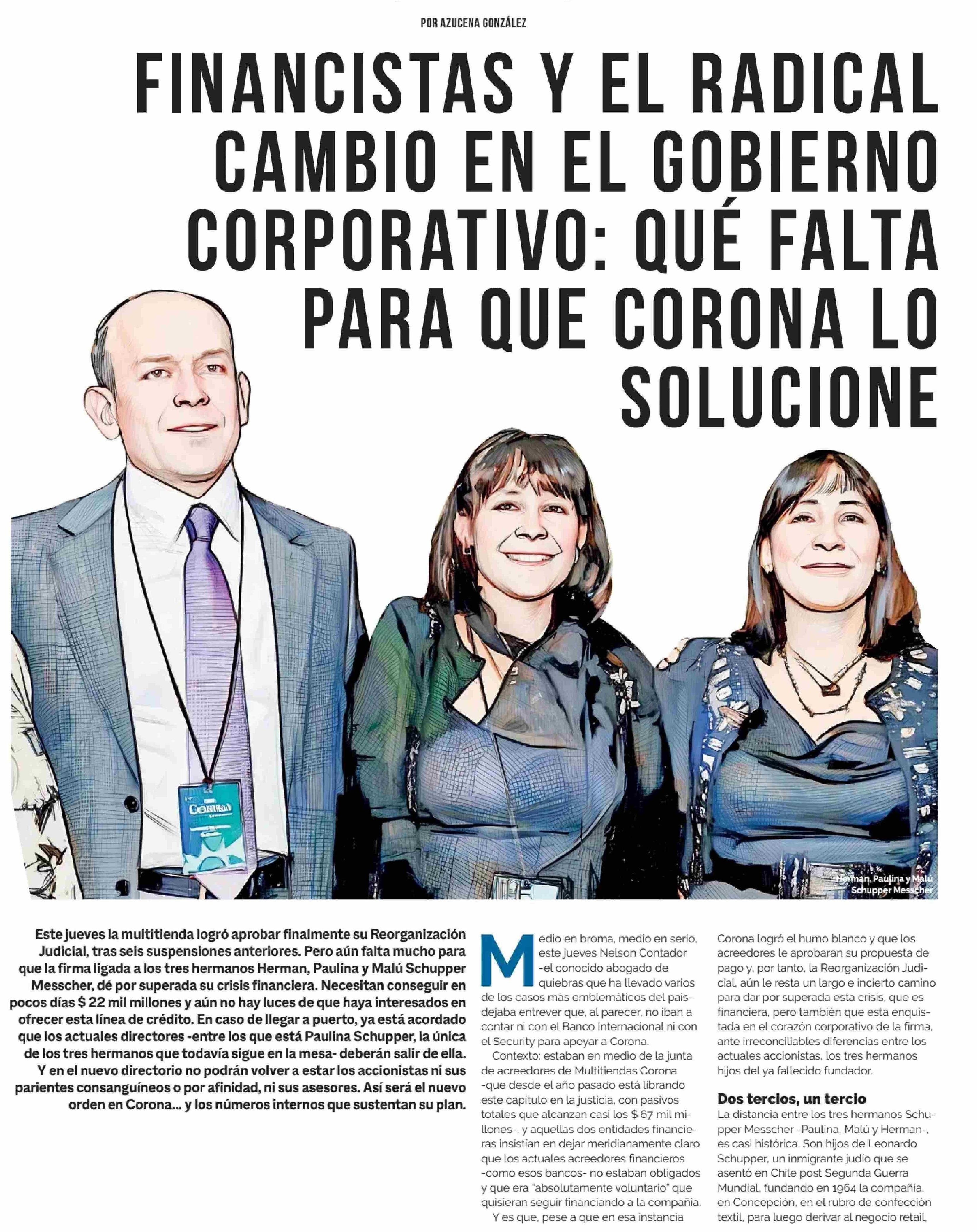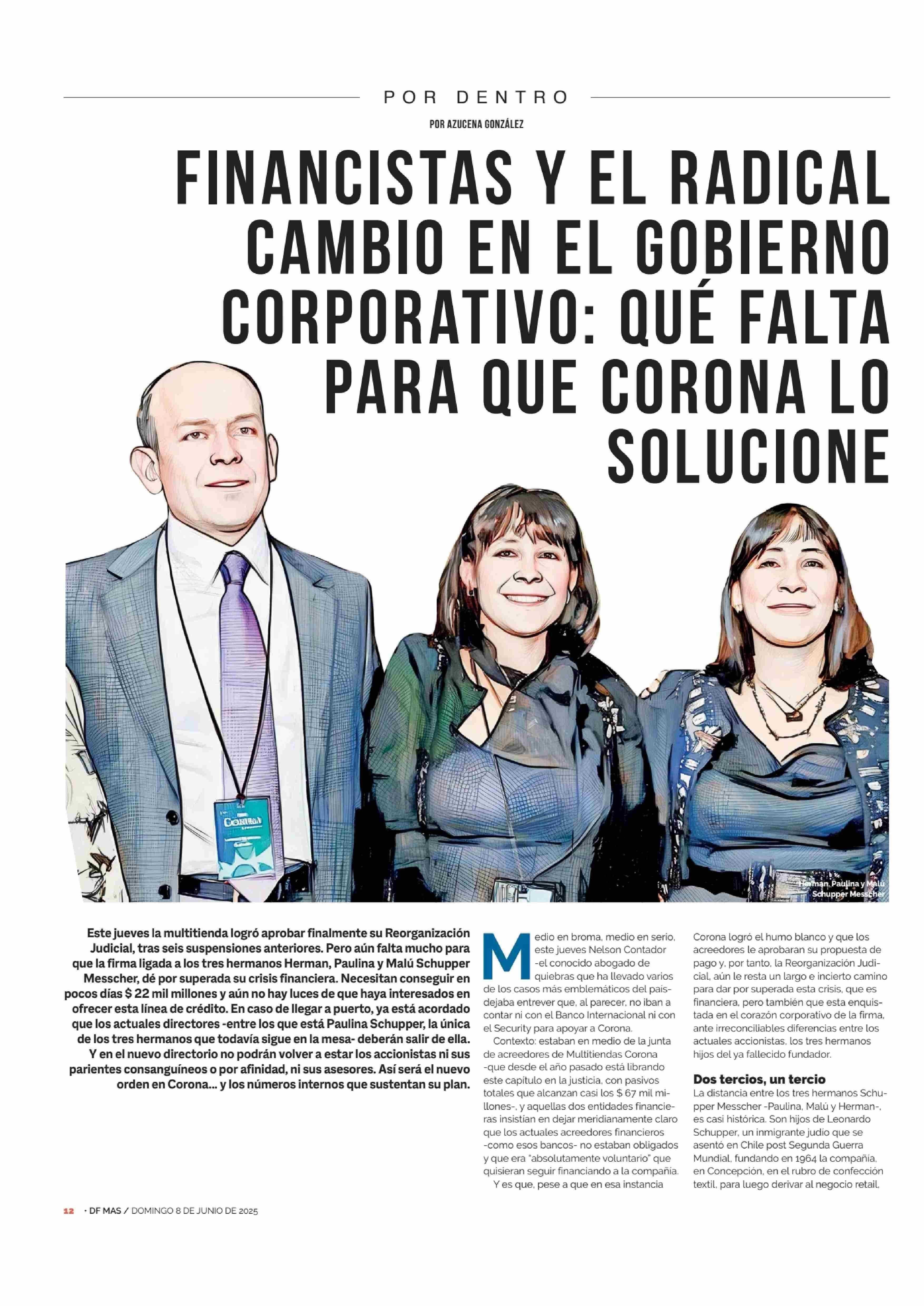 FINANCISTAS Y EL RADICAL CAMBIO EN EL GOBIERNO CORPORATIVO: QUE FALTA PARA QUE CORONA LO SOLUCIONE 08-06-2025 Diario Financiero |
