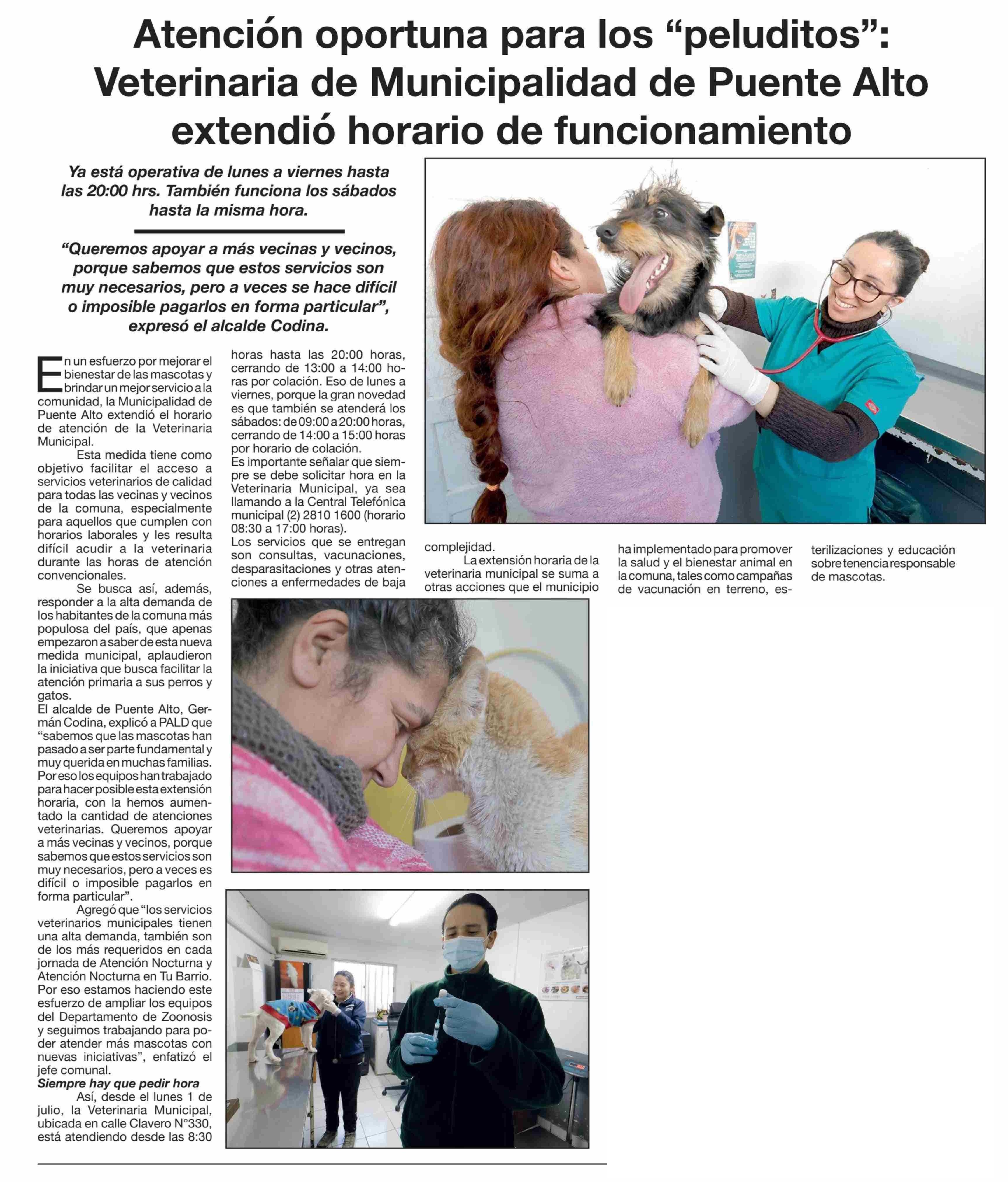 Atención oportuna para los “peluditos”: Veterinaria de Municipalidad de Puente Alto extendió horario de funcionamiento 13-07-2024 Puente Alto Al Dia |