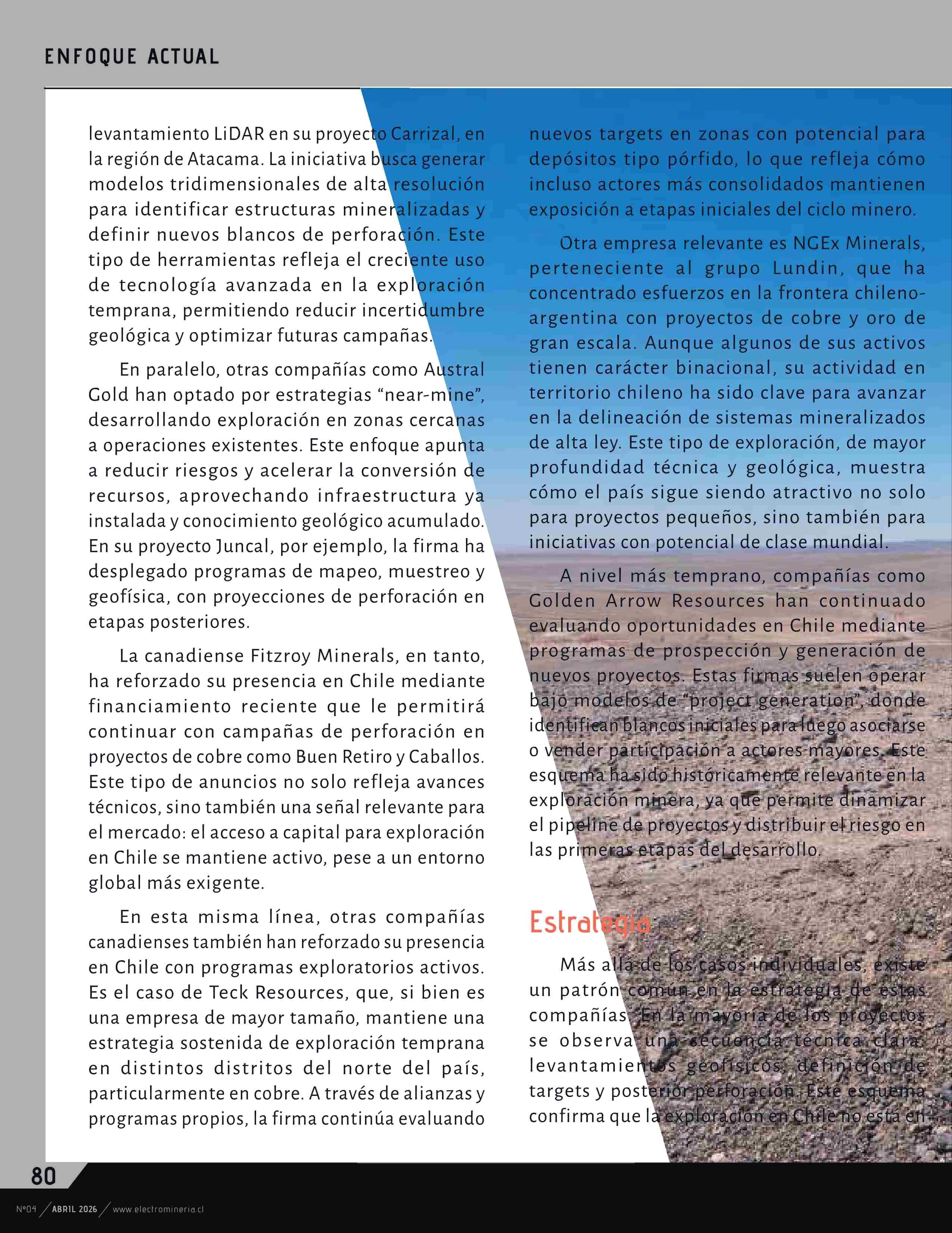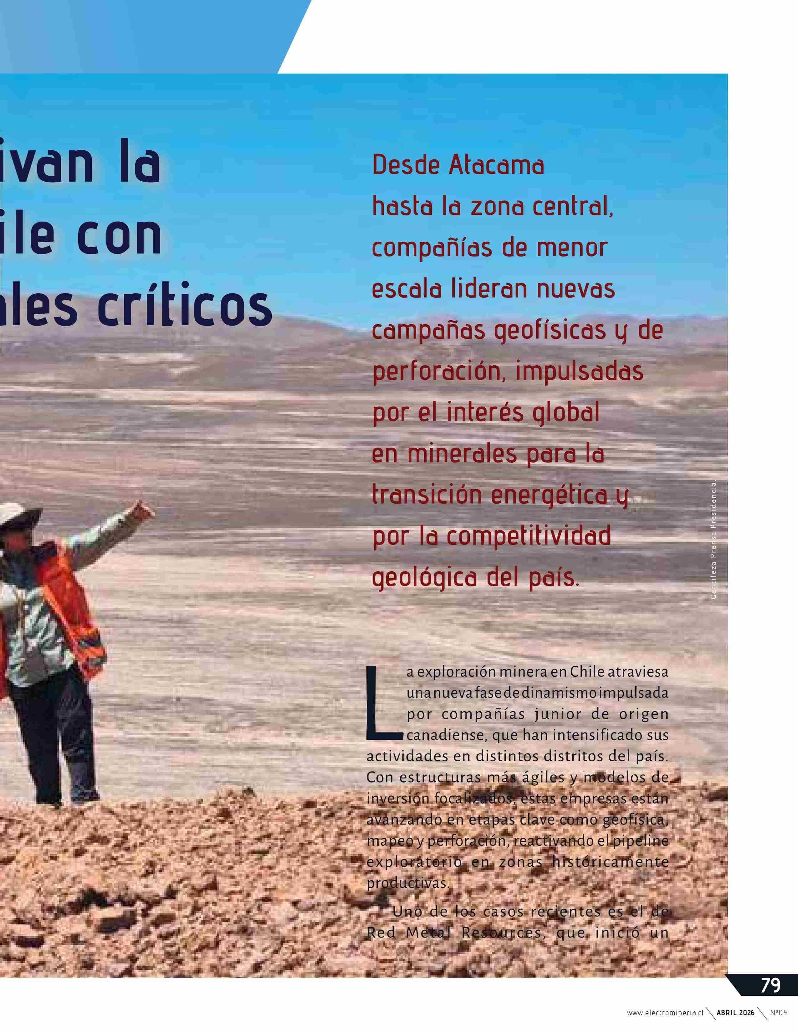 Juniors canadienses reactivan la exploración minera en CHile 09-04-2026 Electrominería |