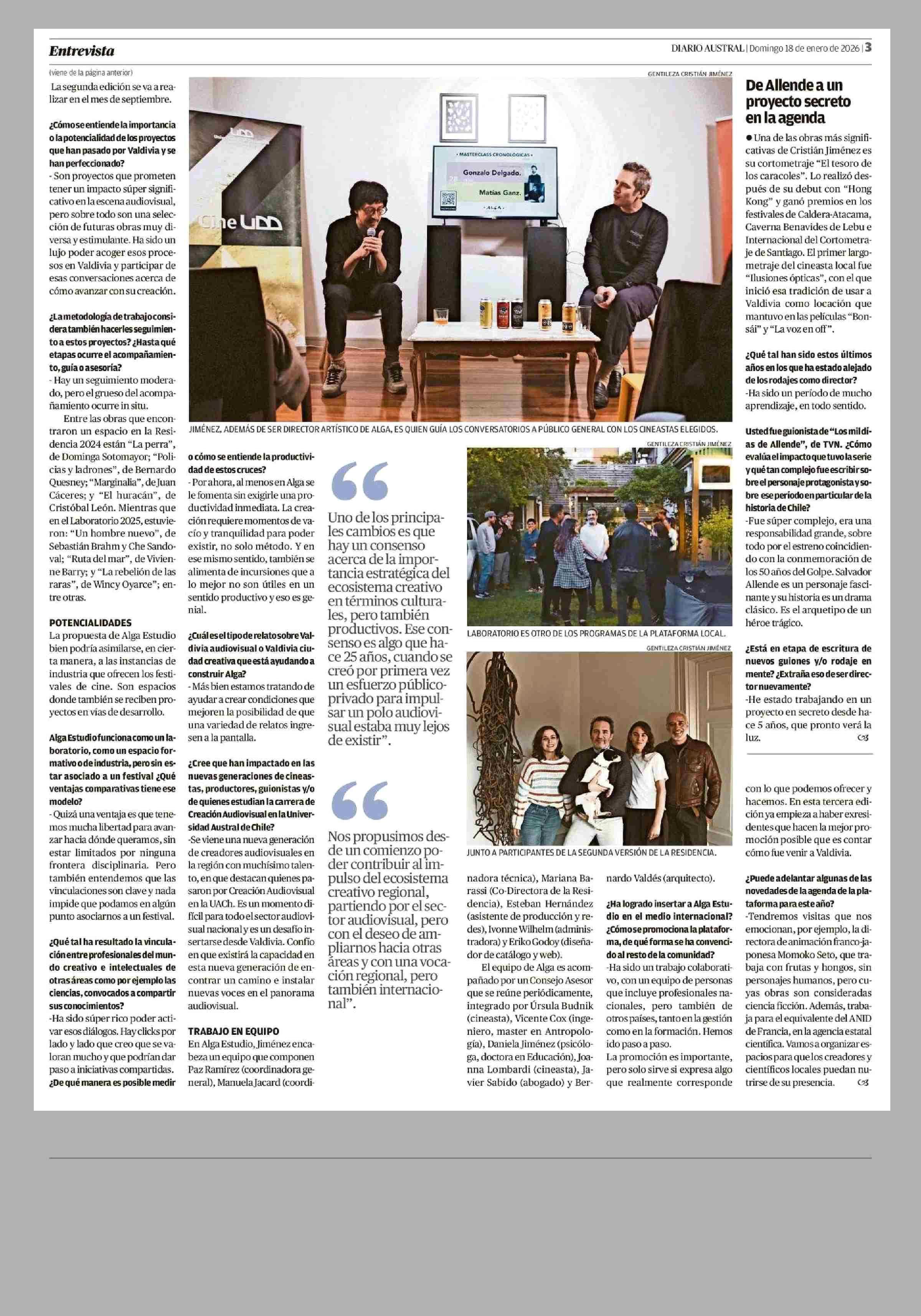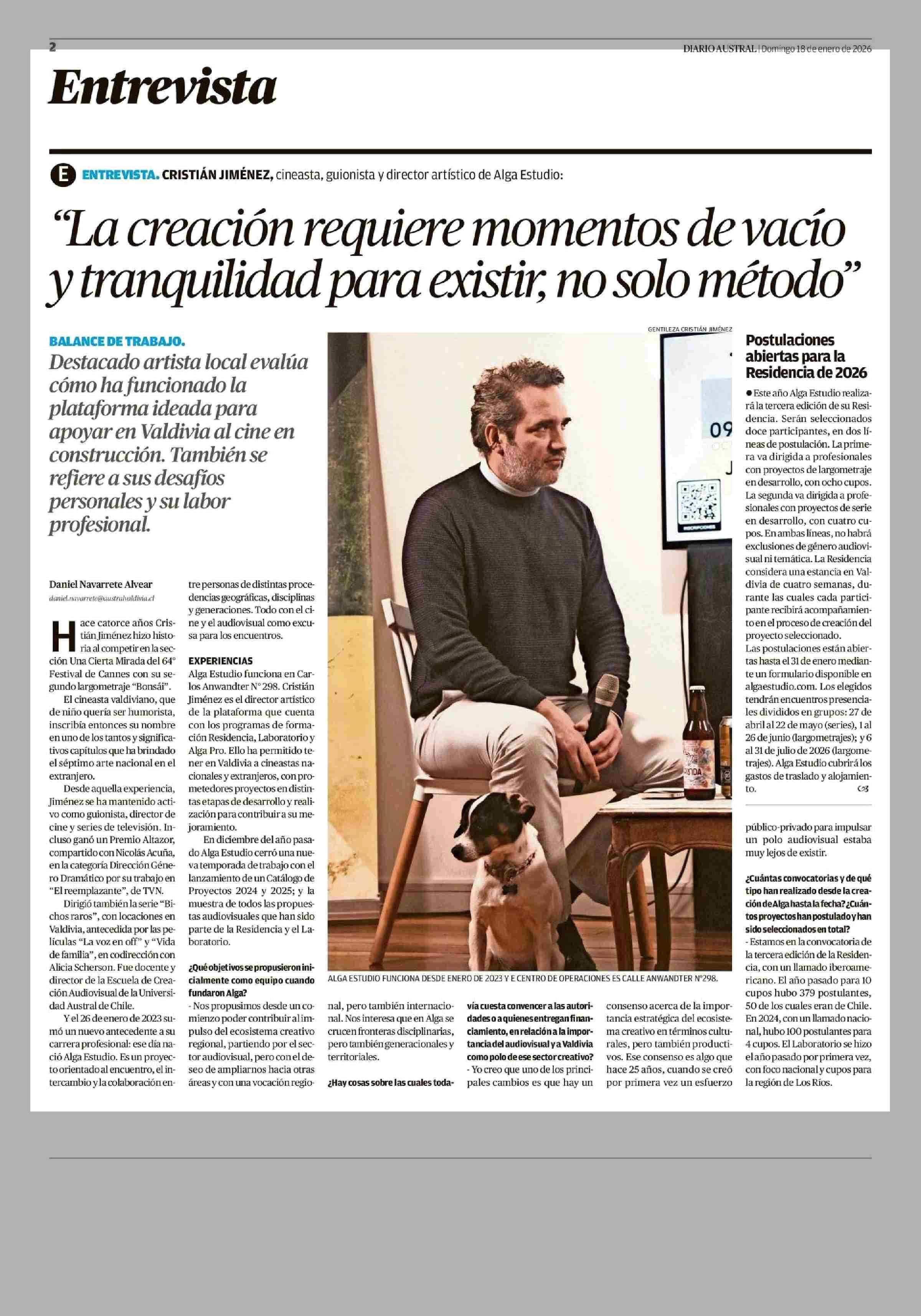 "La creación requiere momentos de vacío y tranquilidad para existir, no solo método" 18-01-2026 Diario Austral Región de Los Ríos |