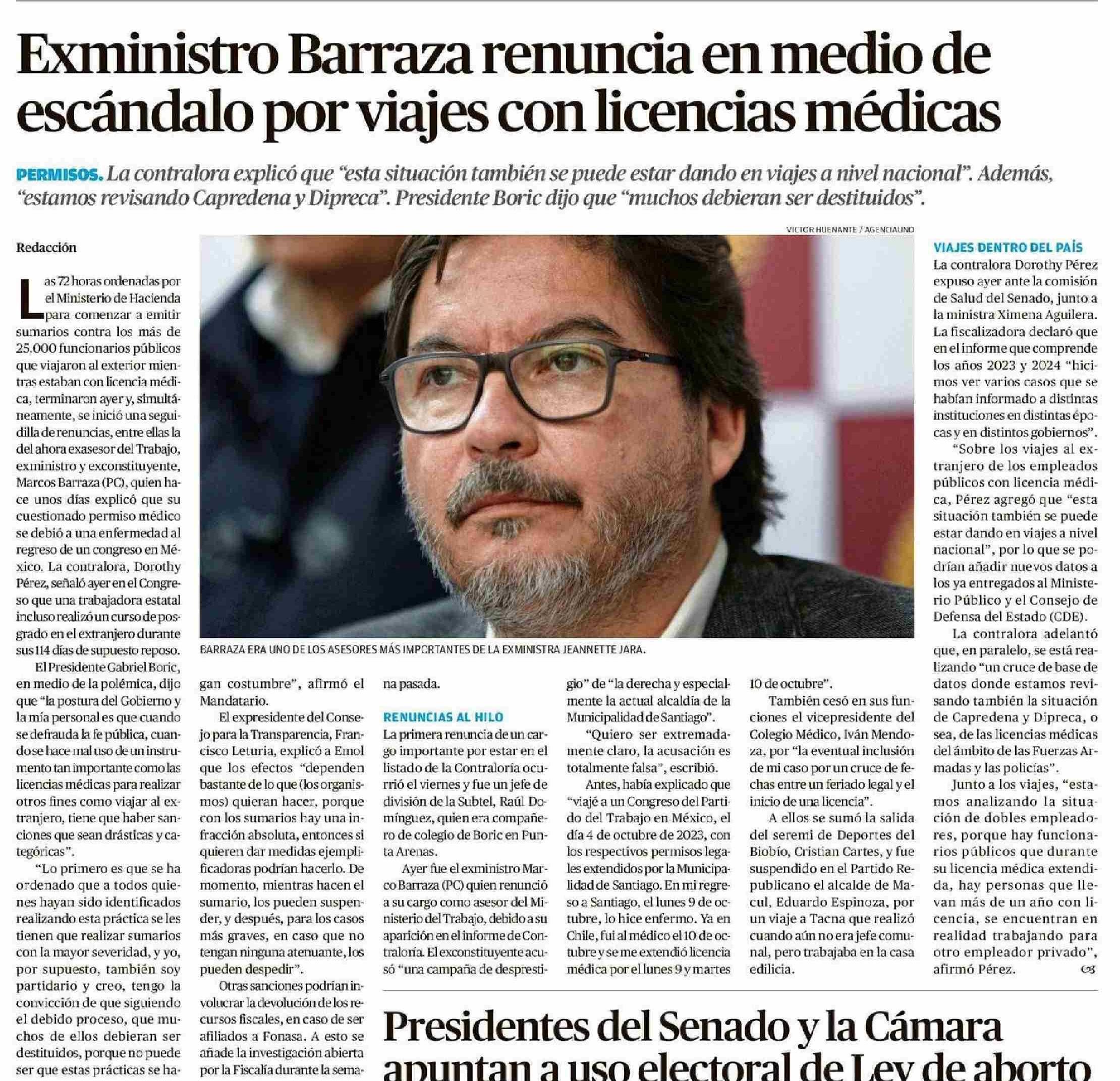 Título: Exministro Barraza renuncia en medio de escándalo por viajes con licencias médicas