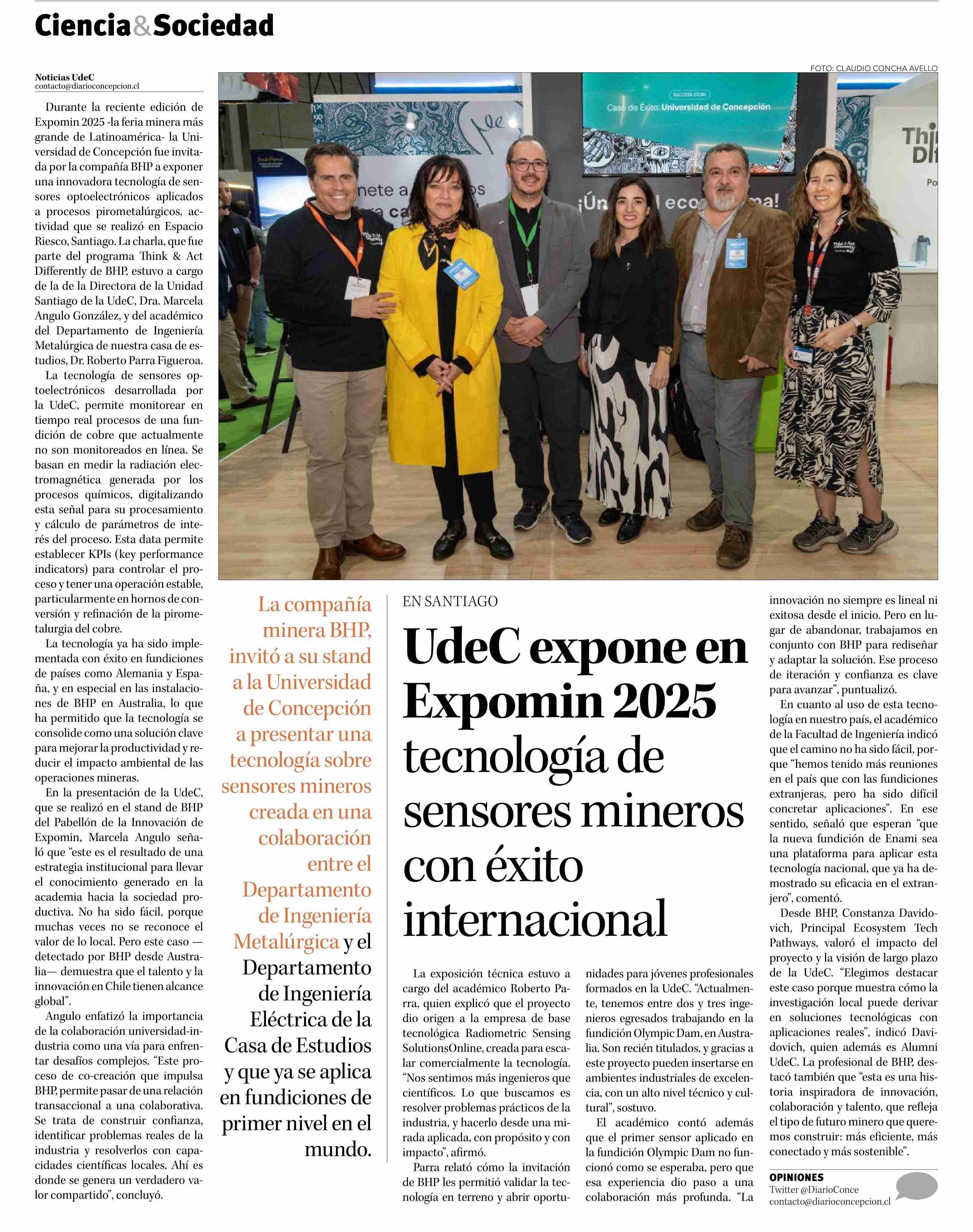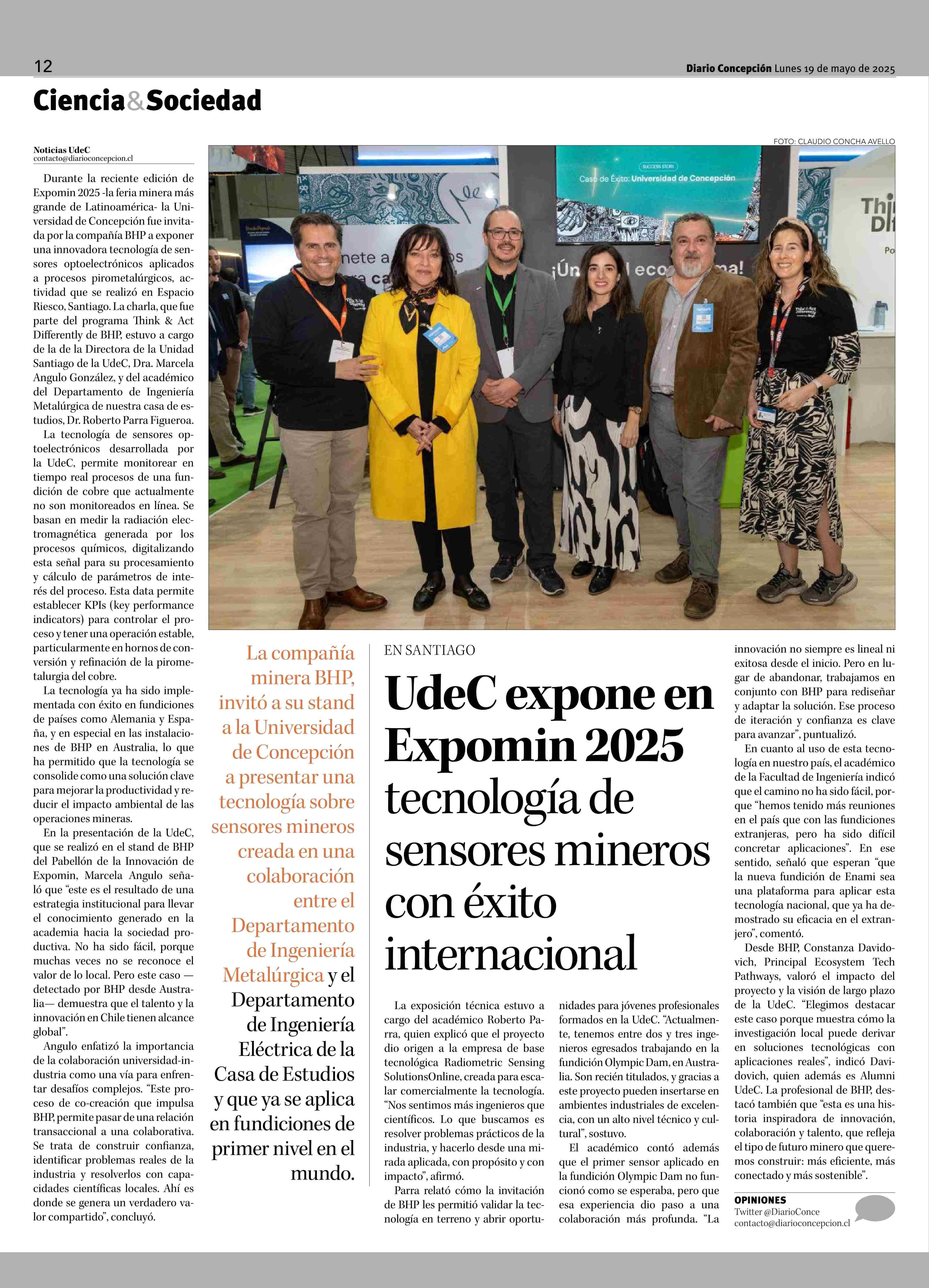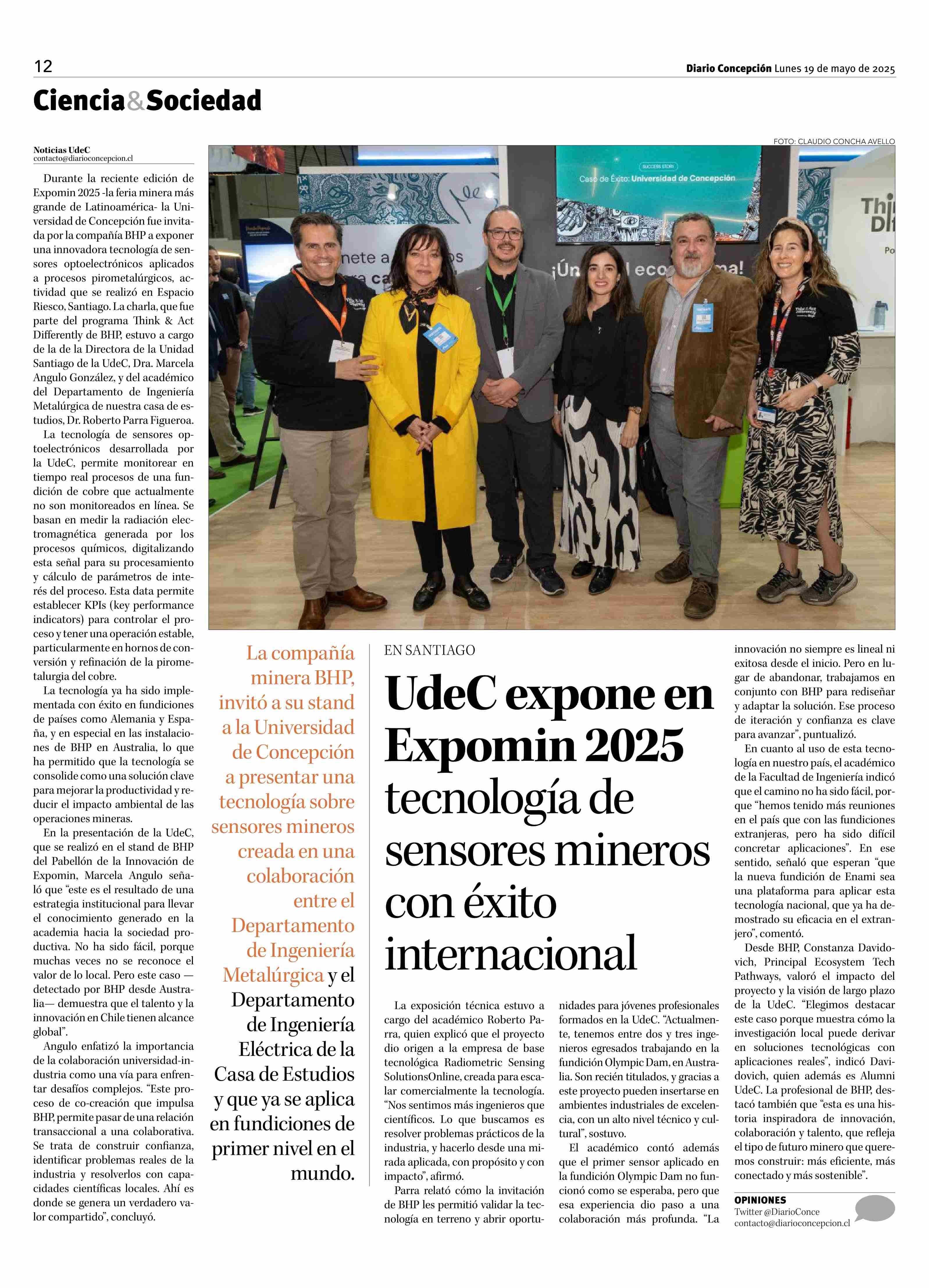 UdeC expone en Expomin 2025 tecnología de sensores mineros con éxito internacional 19-05-2025 Diario Concepción |