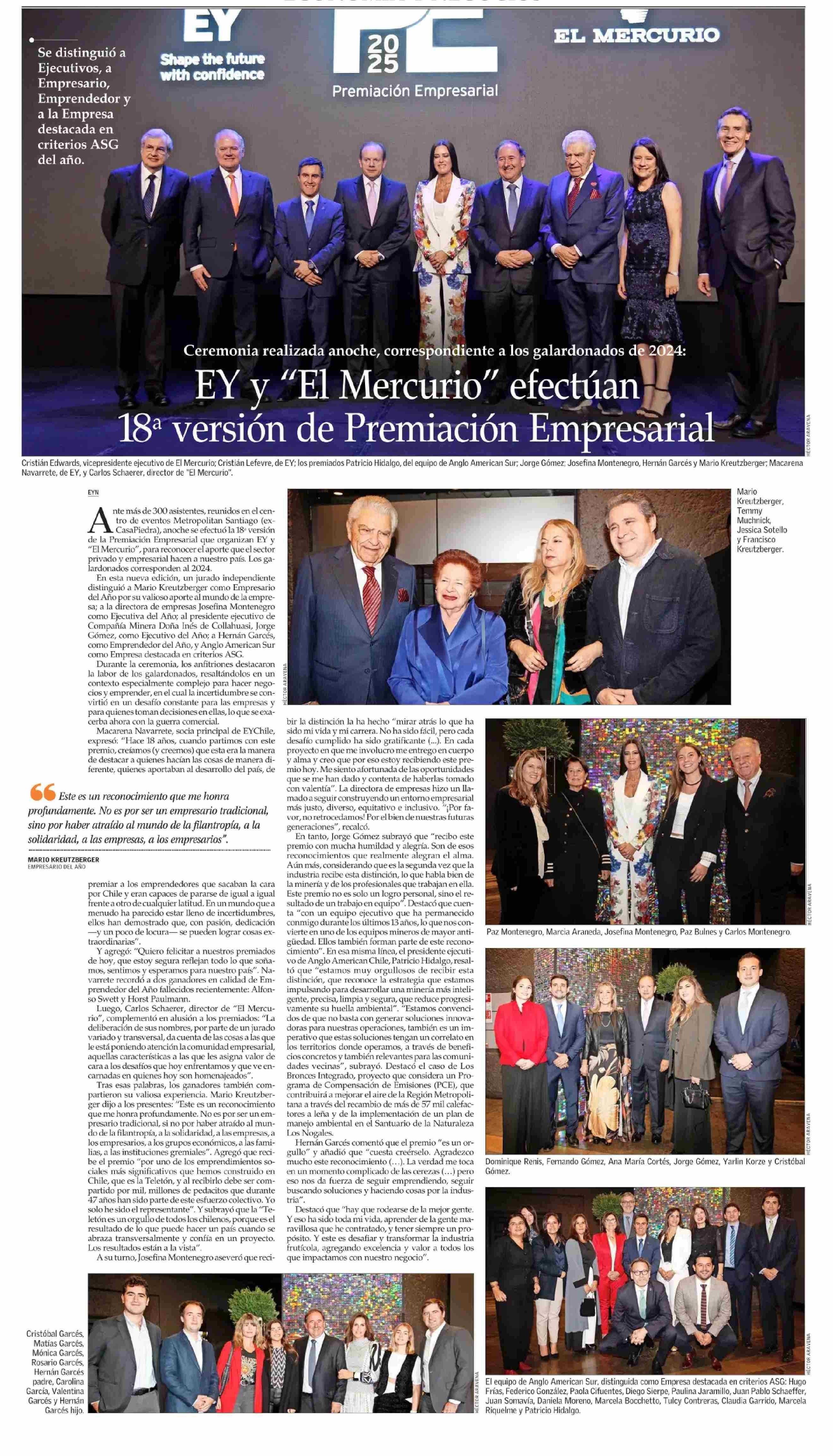EY y “El Mercurio” efectúan; 18* versión de Premiación Empresarial 11-04-2025 El Mercurio |