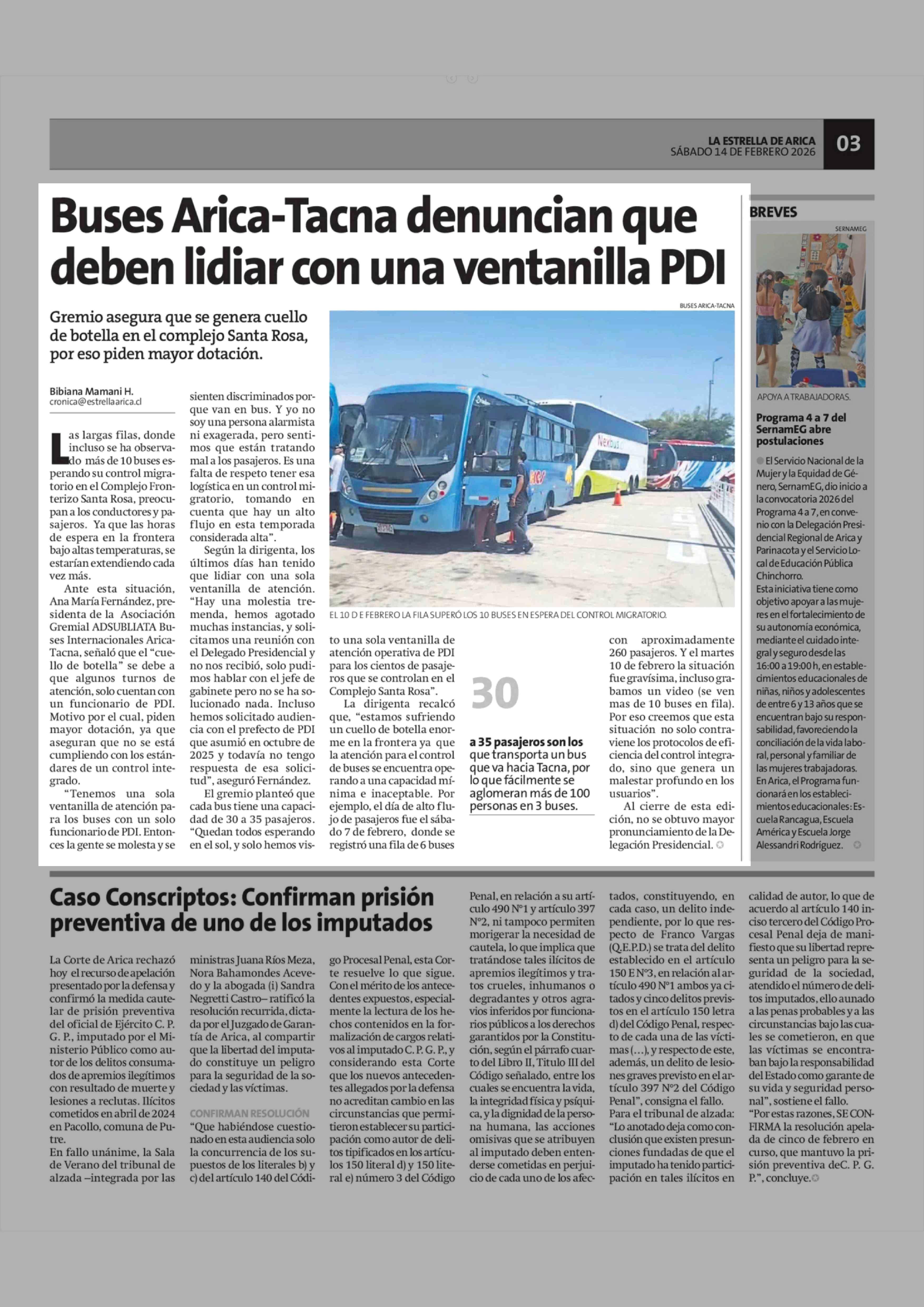 Título: Buses Arica-Tacna denuncian que deben lidiar con una ventanilla PDI