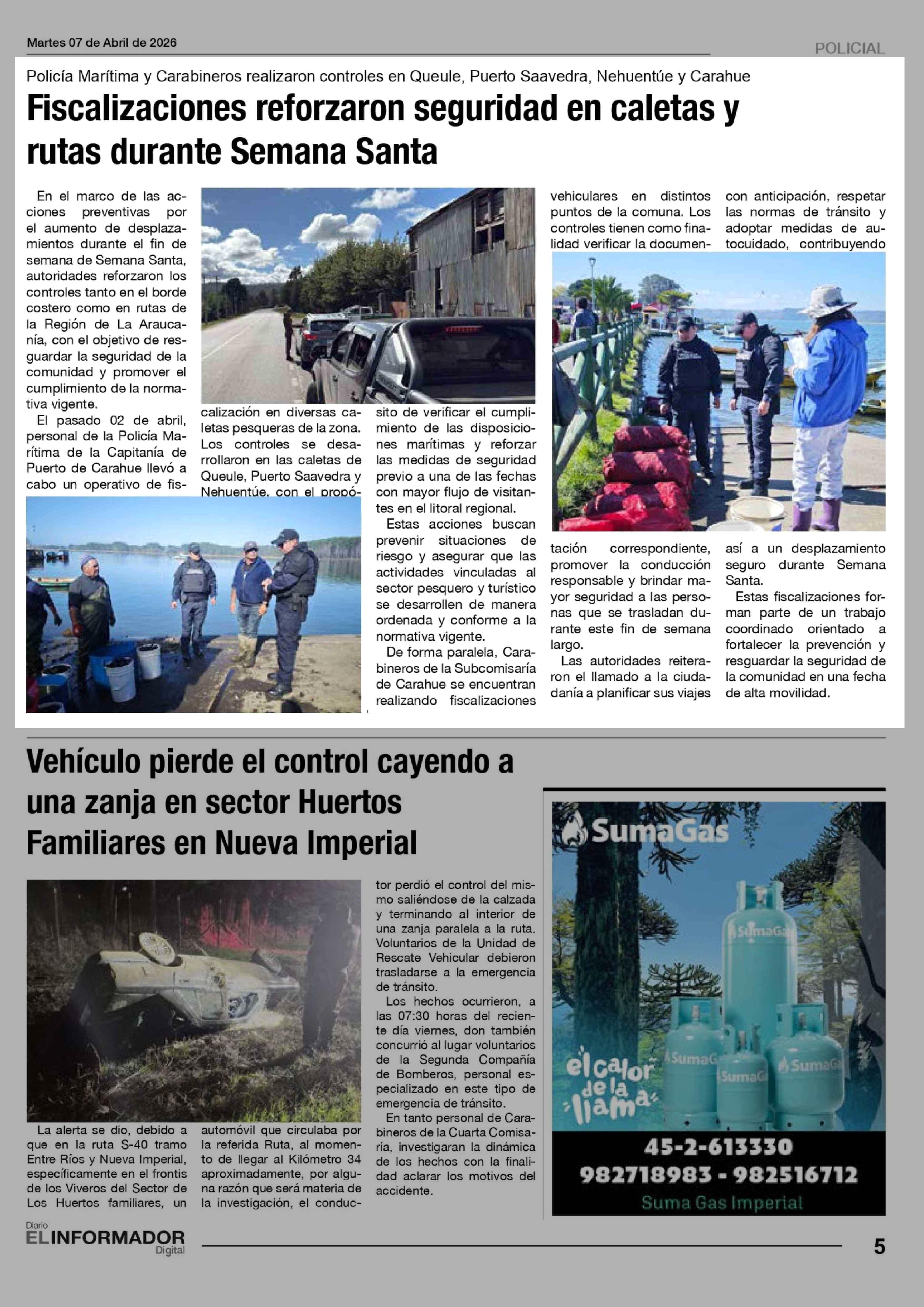 Título: Fiscalizaciones reforzaron seguridad en caletas y rutas durante Semana Santa