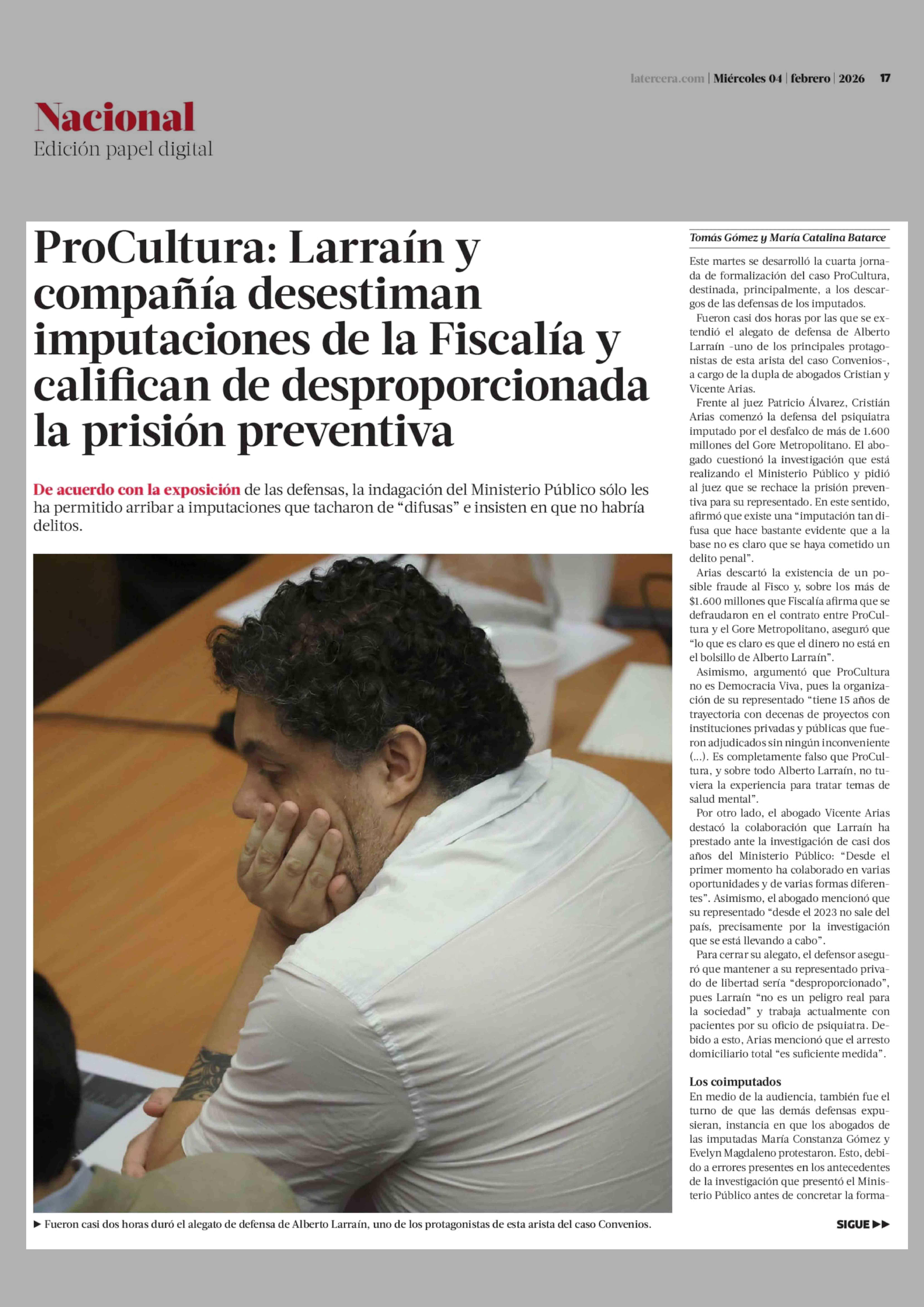 Título: ProCultura: Larraín y compañía desestiman imputaciones de la Fiscalía y califican de desproporcionada la prisión preventiva