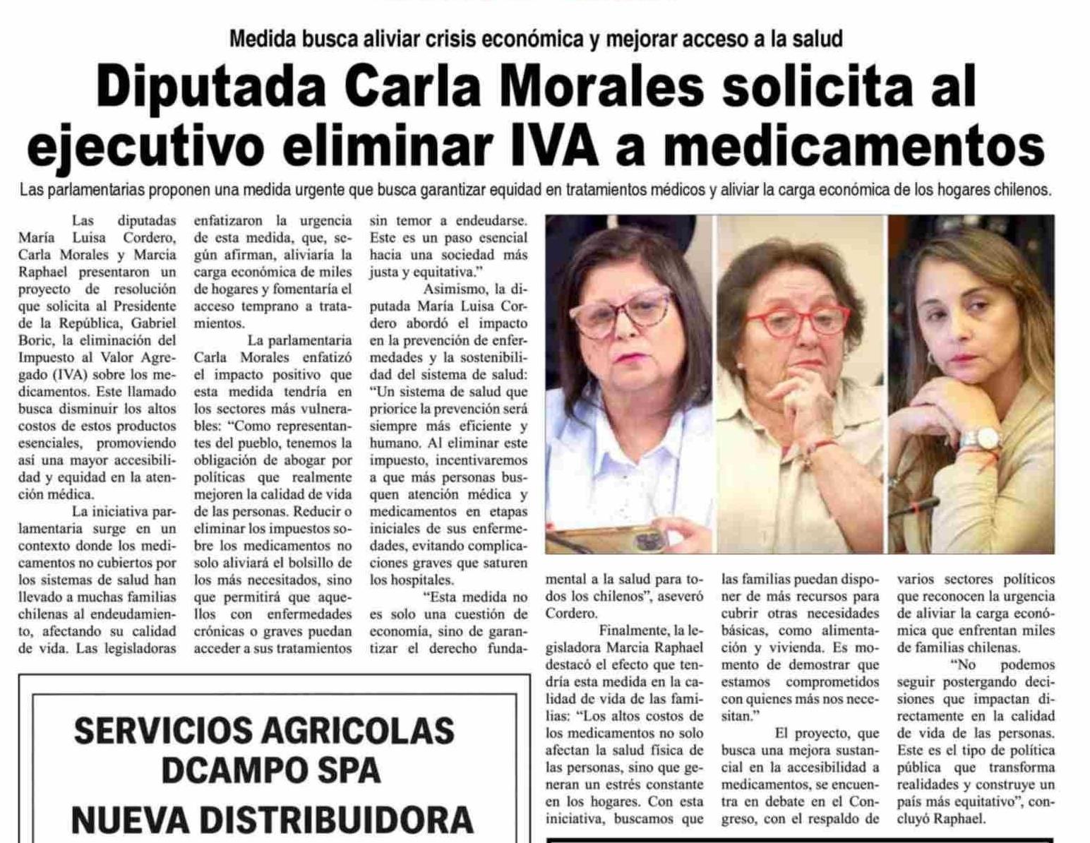 Diputada Carla Morales solicita al ejecutivo eliminar IVA a medicamentos 22-05-2025 Diario VI Región |