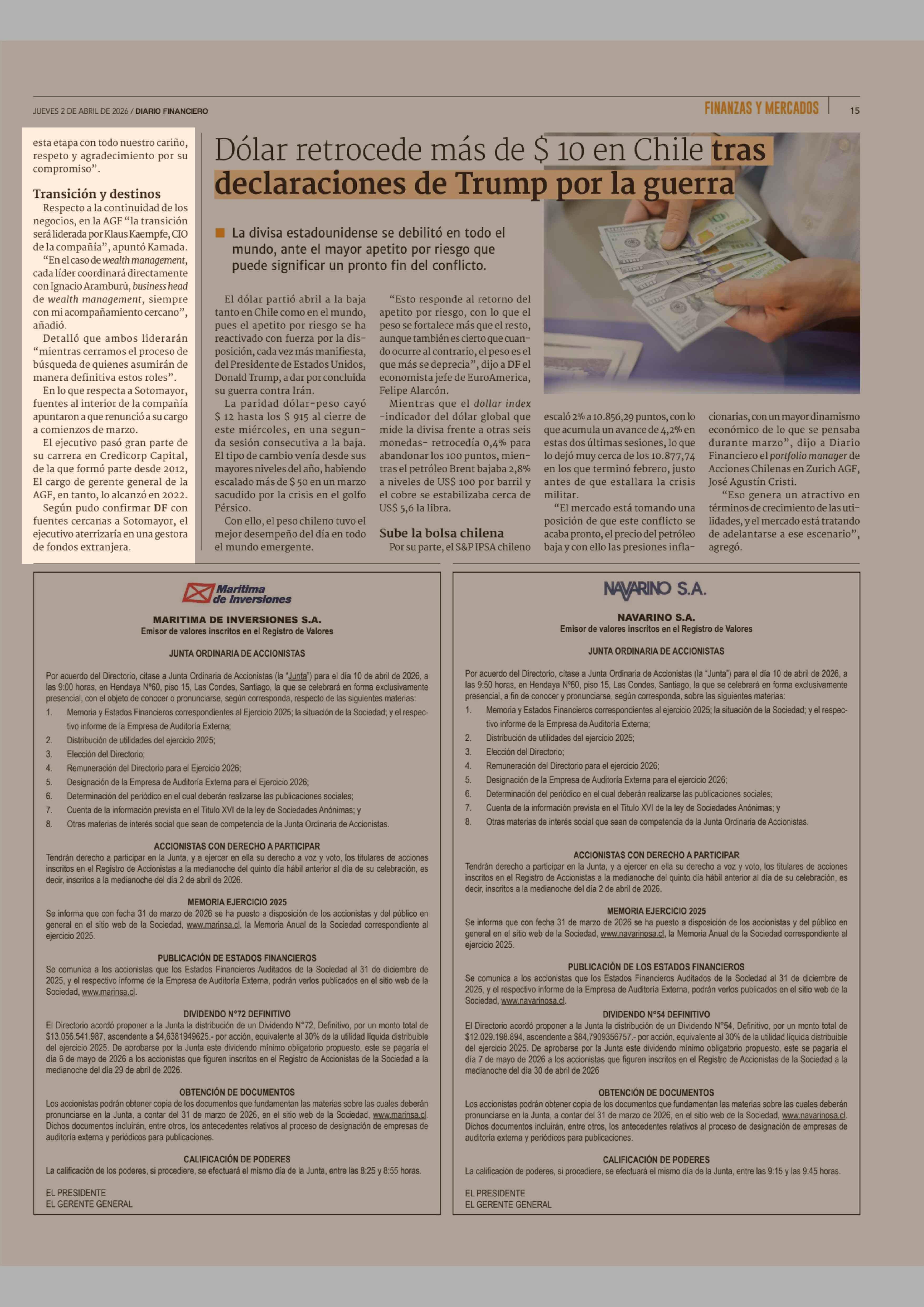 Fuente: Diario Financiero (Diario Financiero) Página(s): 14-15