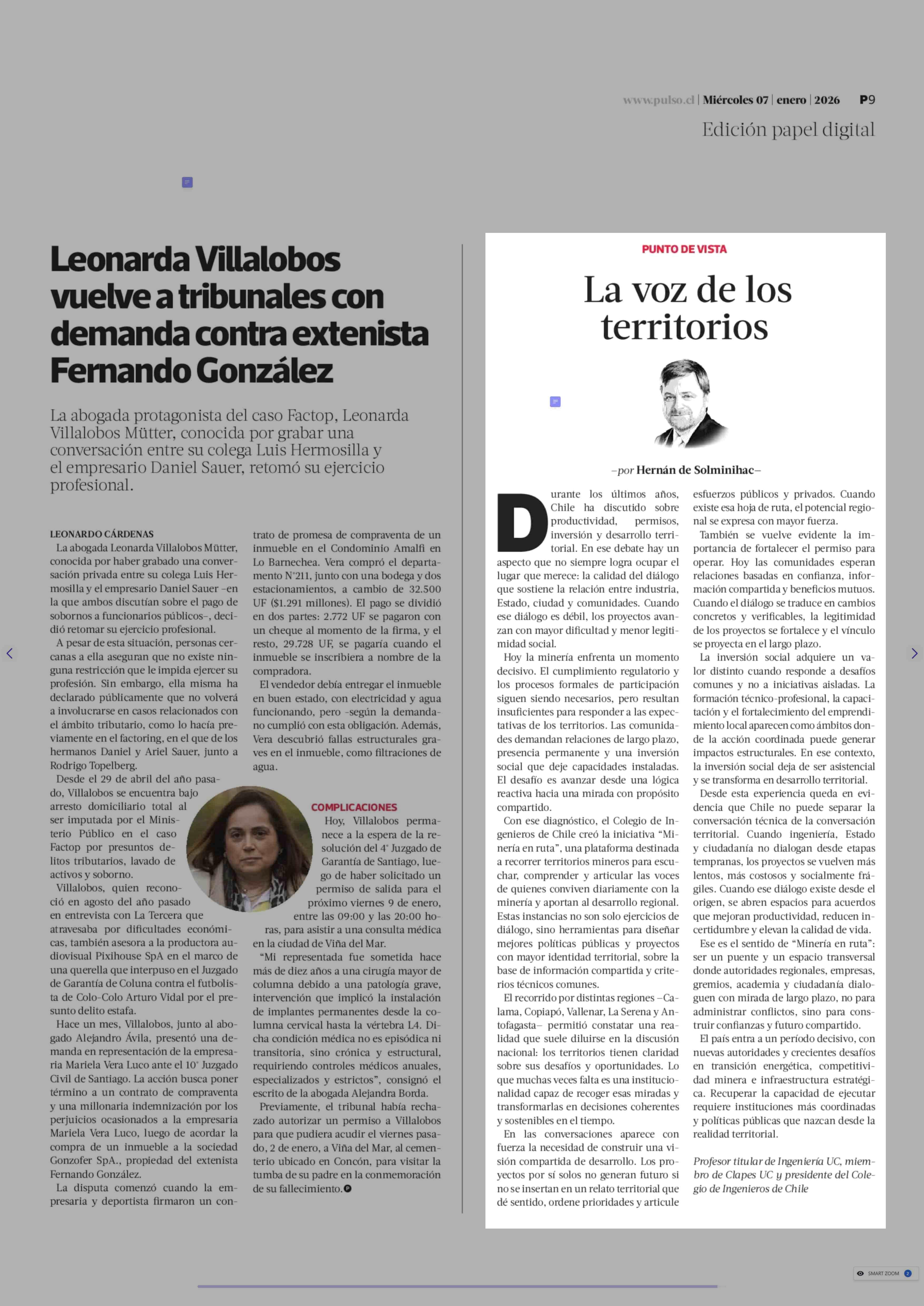 Columnas de Opinión: La voz de los territorios 07-01-2026 La Tercera |