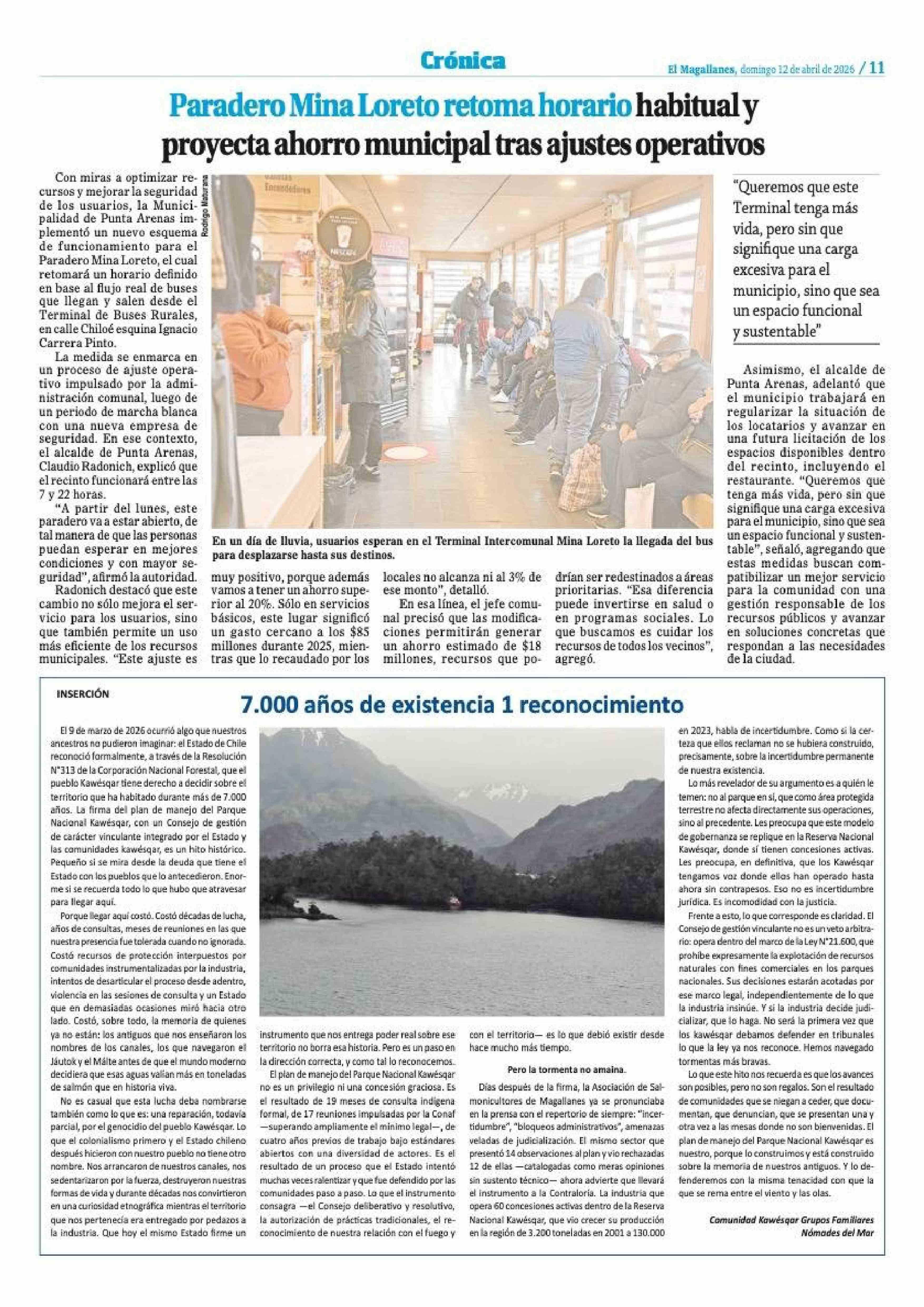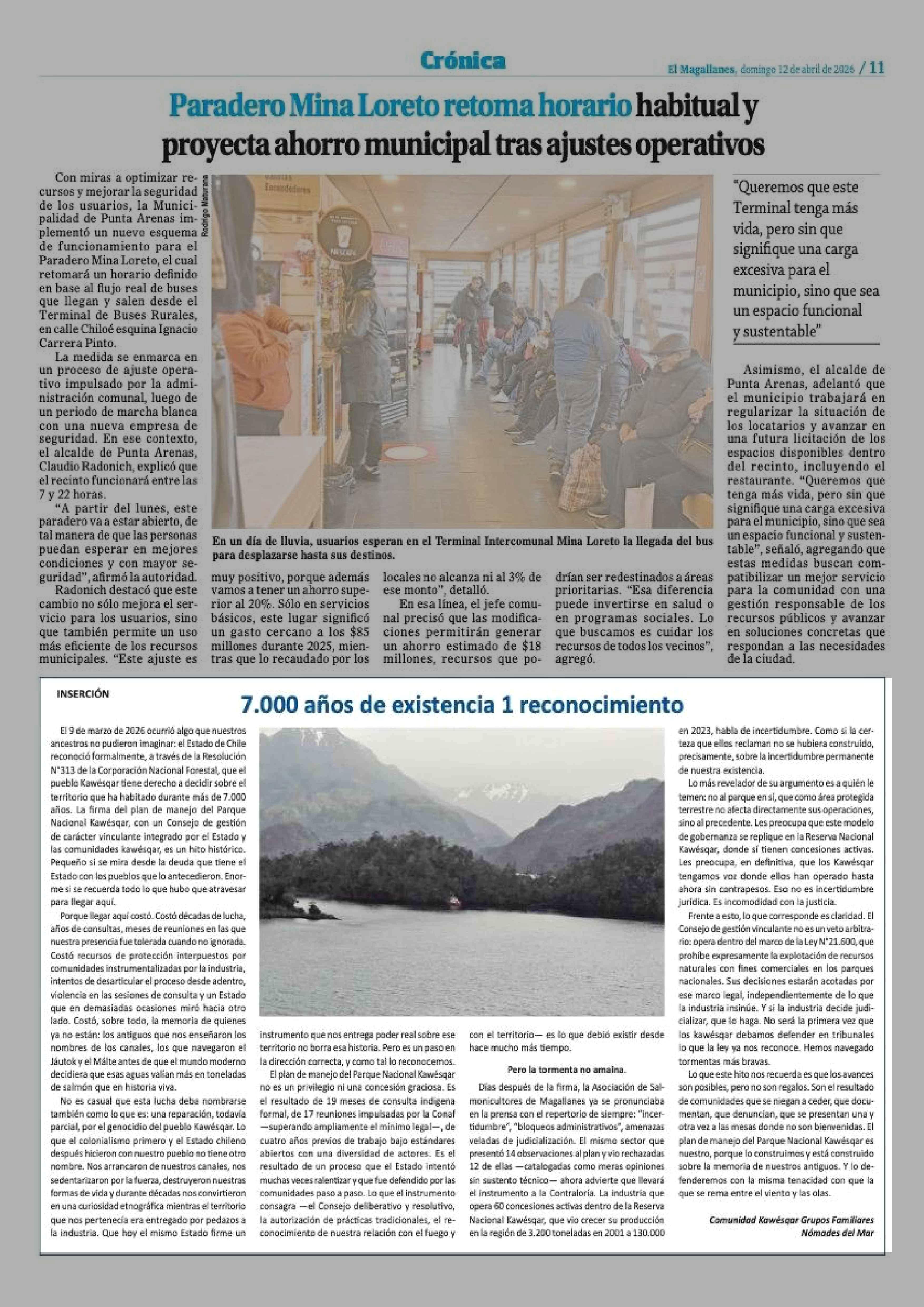 | Fecha: | 12-04-2026 | Sector: | Noticia general | Región: | Región de Magallanes y de la Antártica Chilena |