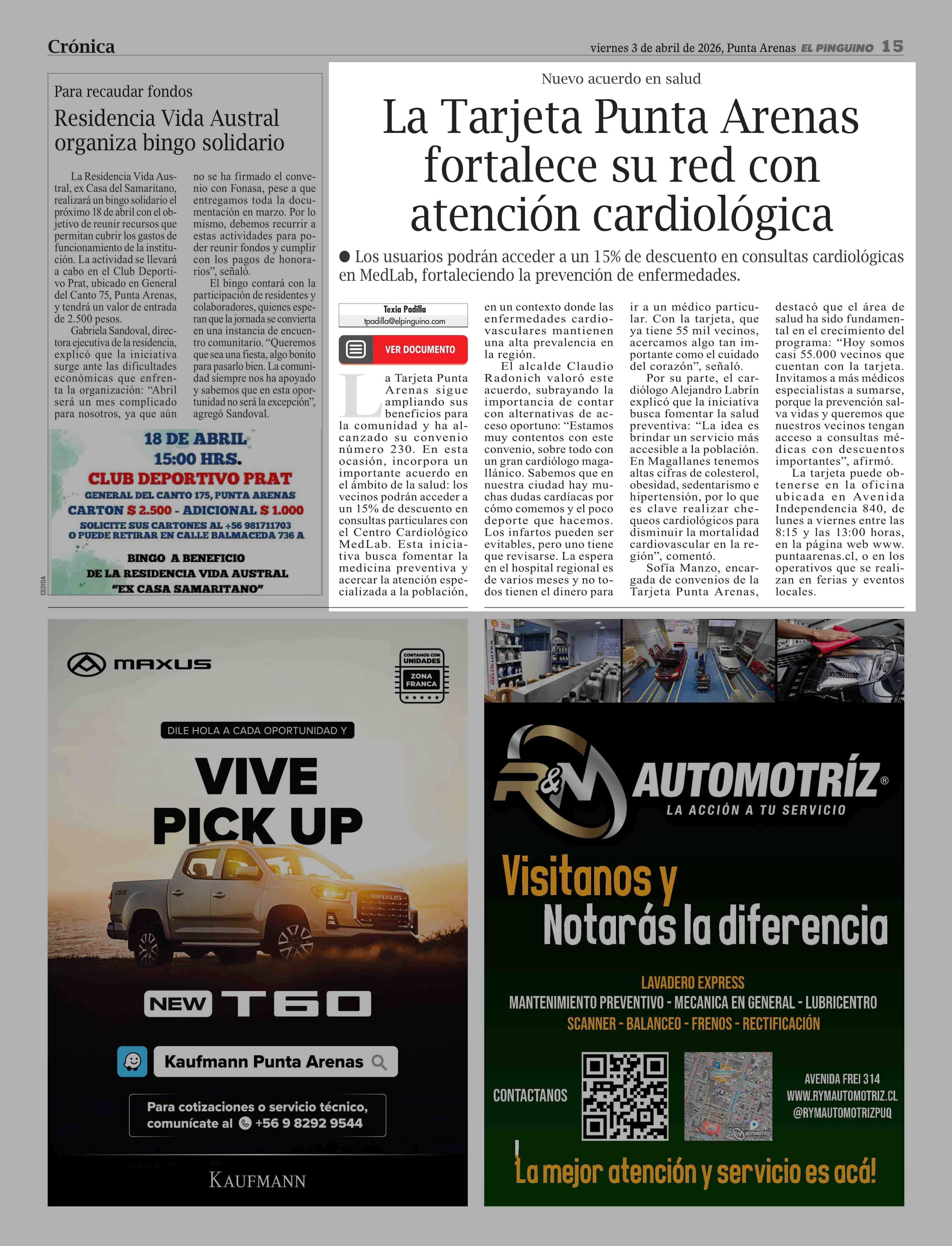 La Tarjeta Punta Arenas fortalece su red con atención cardiológica 03-04-2026 El Pingüino |