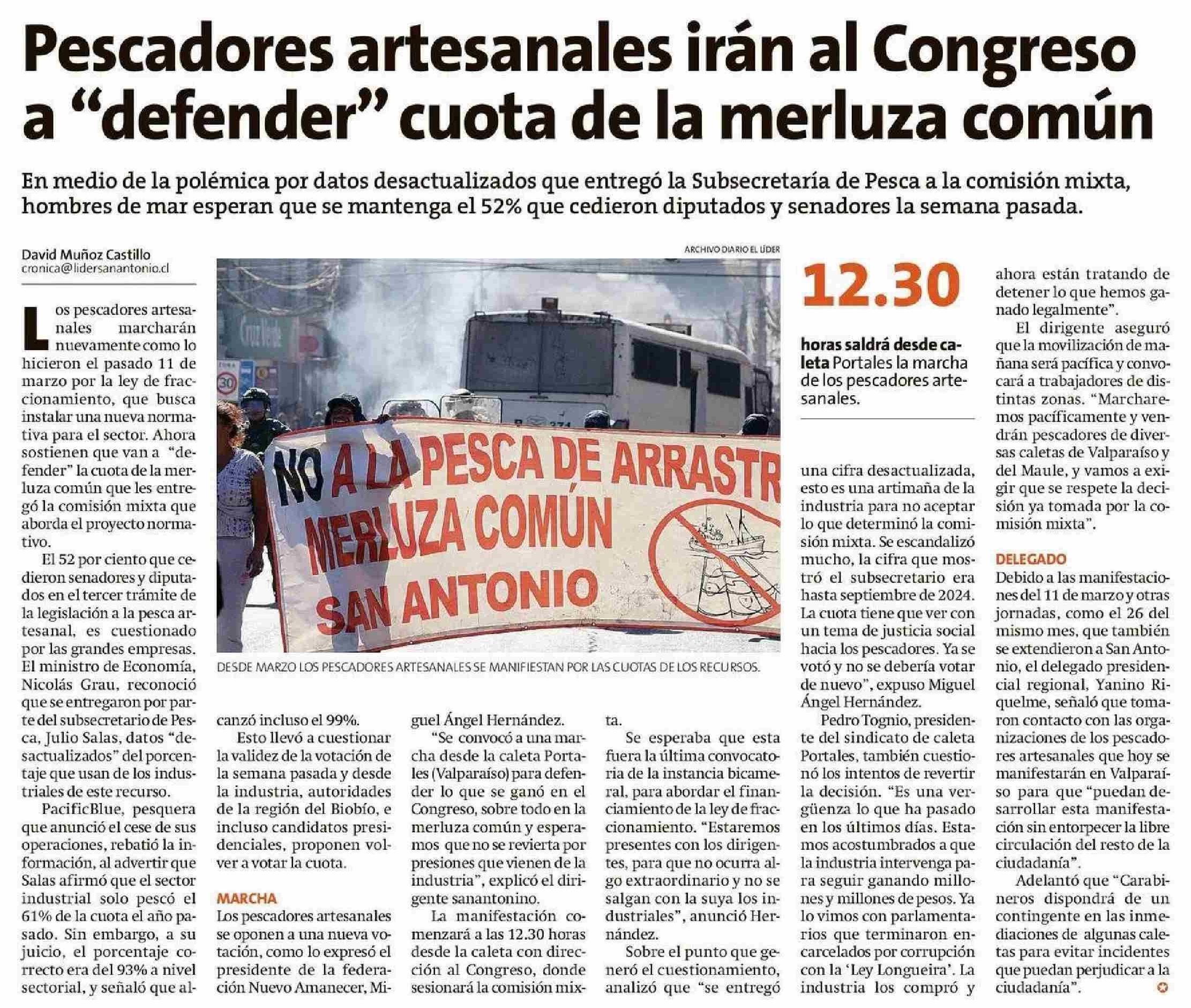Pescadores artesanales irán al Congreso a “defender” cuota de la merluza común 13-05-2025 El Líder |