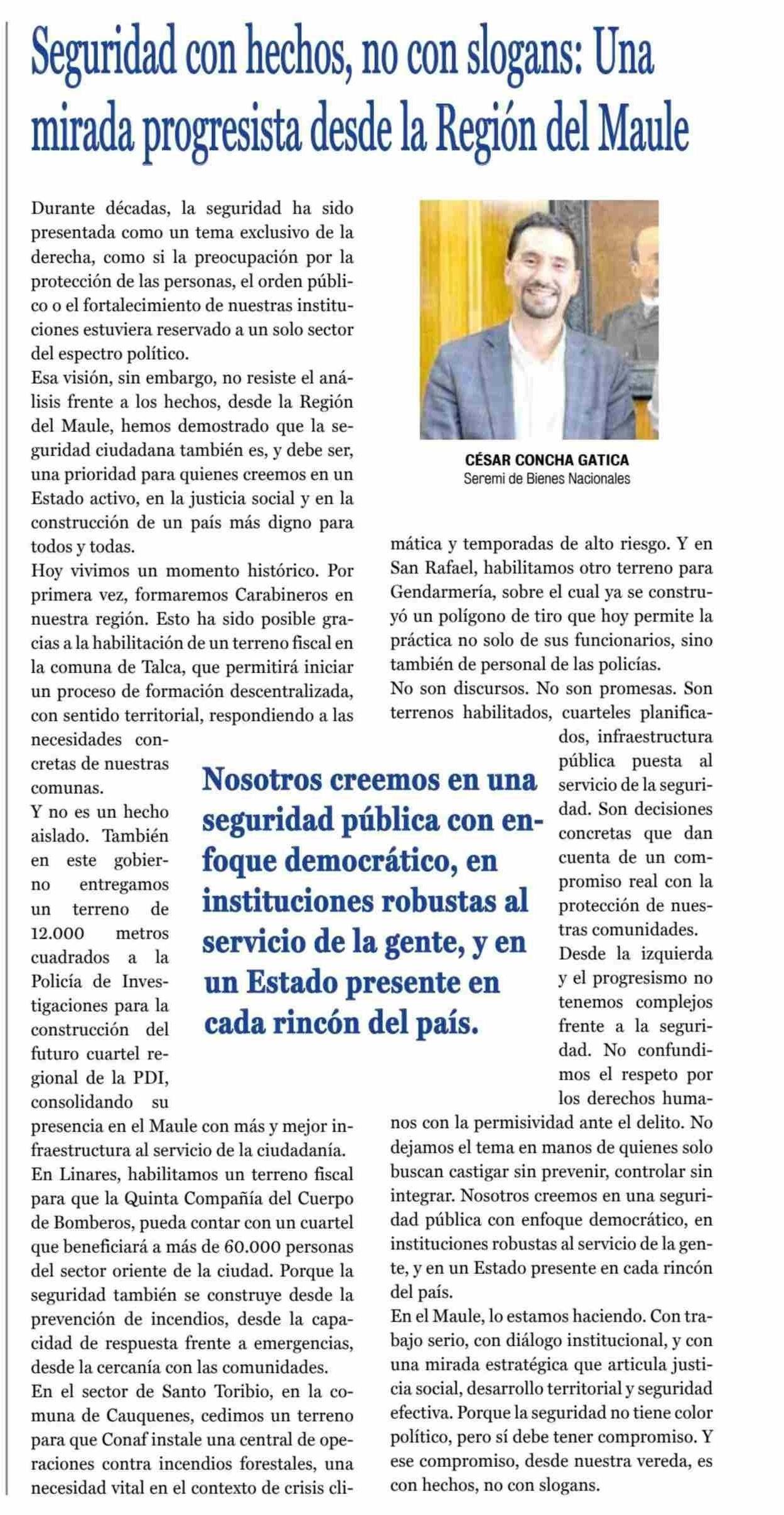 COLUMNAS DE OPINIÓN: Una mirada progresista desde la Región del Maule 20-06-2025 La Prensa de Curicó |