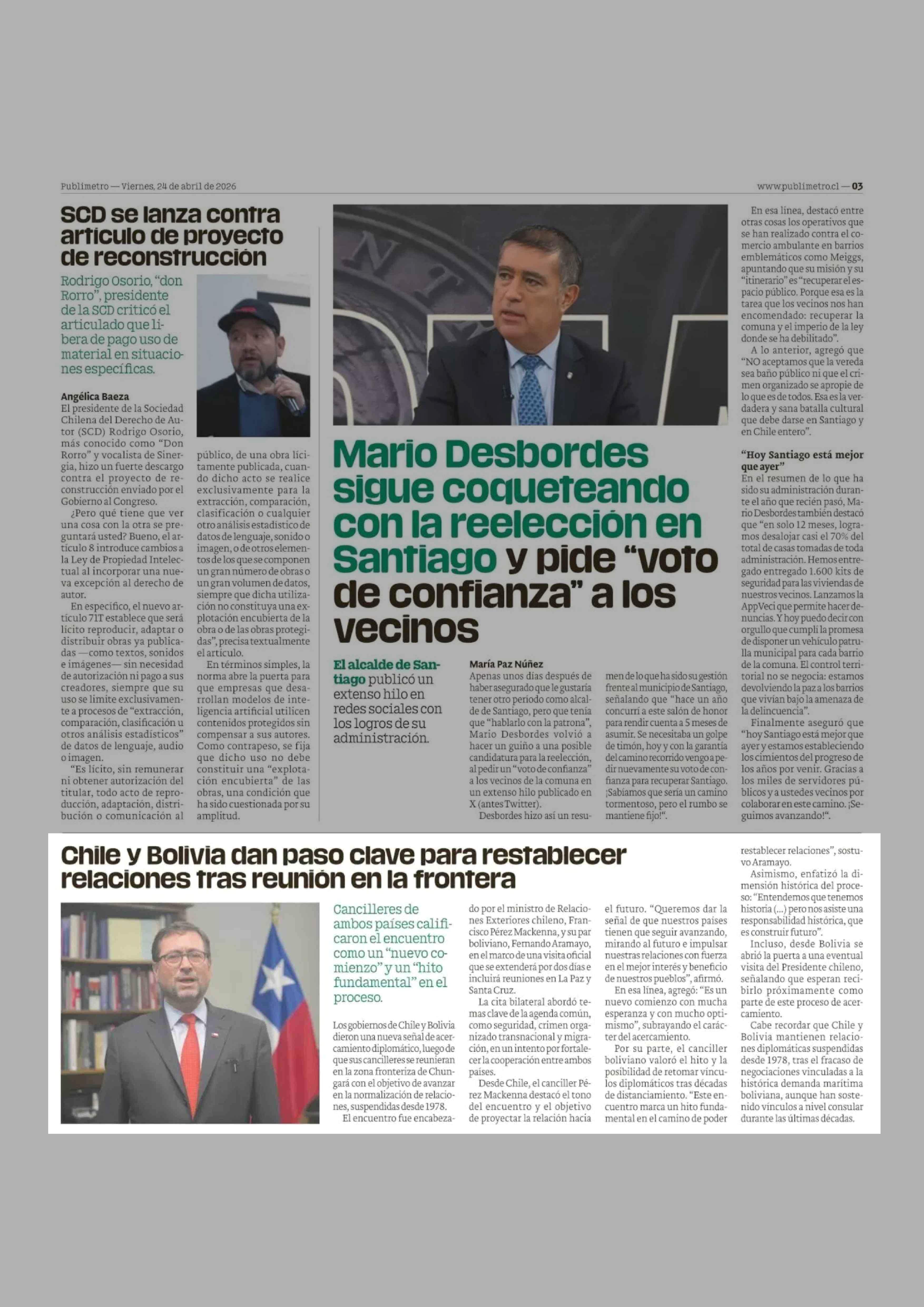 Chile y Bolivia dan paso clave para restablecer relaciones tras reunion en la frontera 24-04-2026 Publimetro |