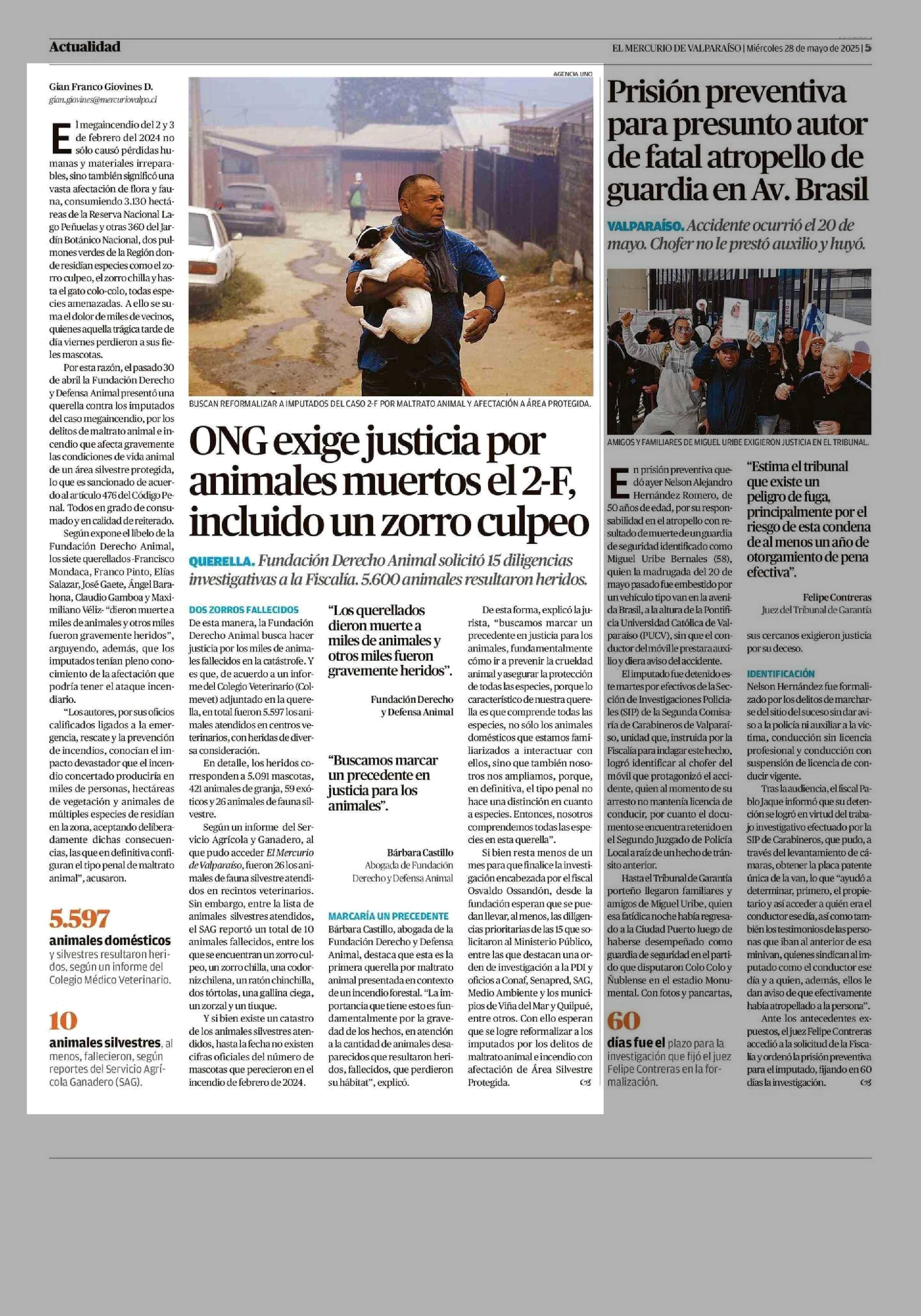 ONG exige justicia por animales muertos el 2-F incluido un zorro culpeo 28-05-2025 El Mercurio de Valparaíso |
