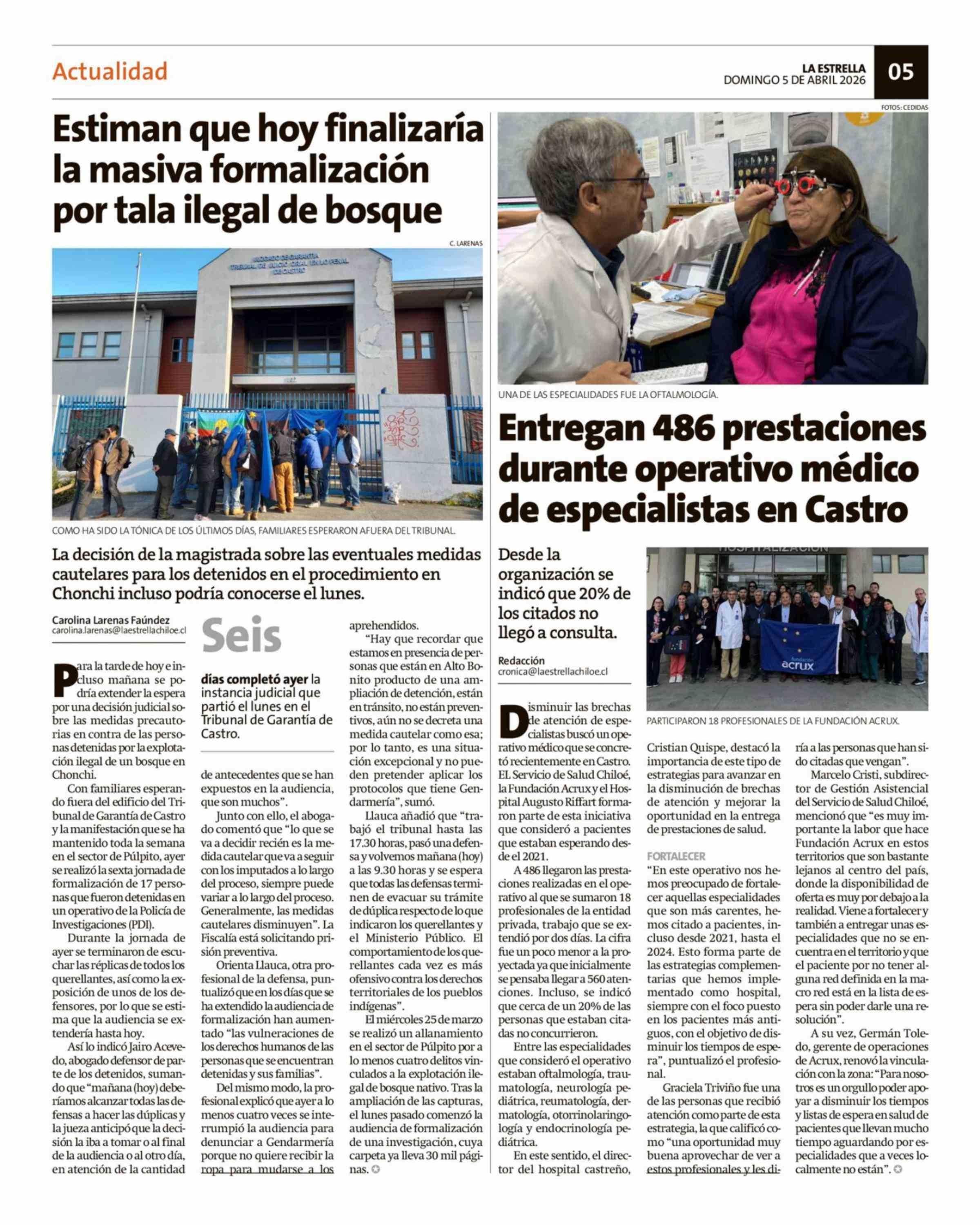 Título: Entregan 486 prestaciones durante operativo médico de especialistas en Castro