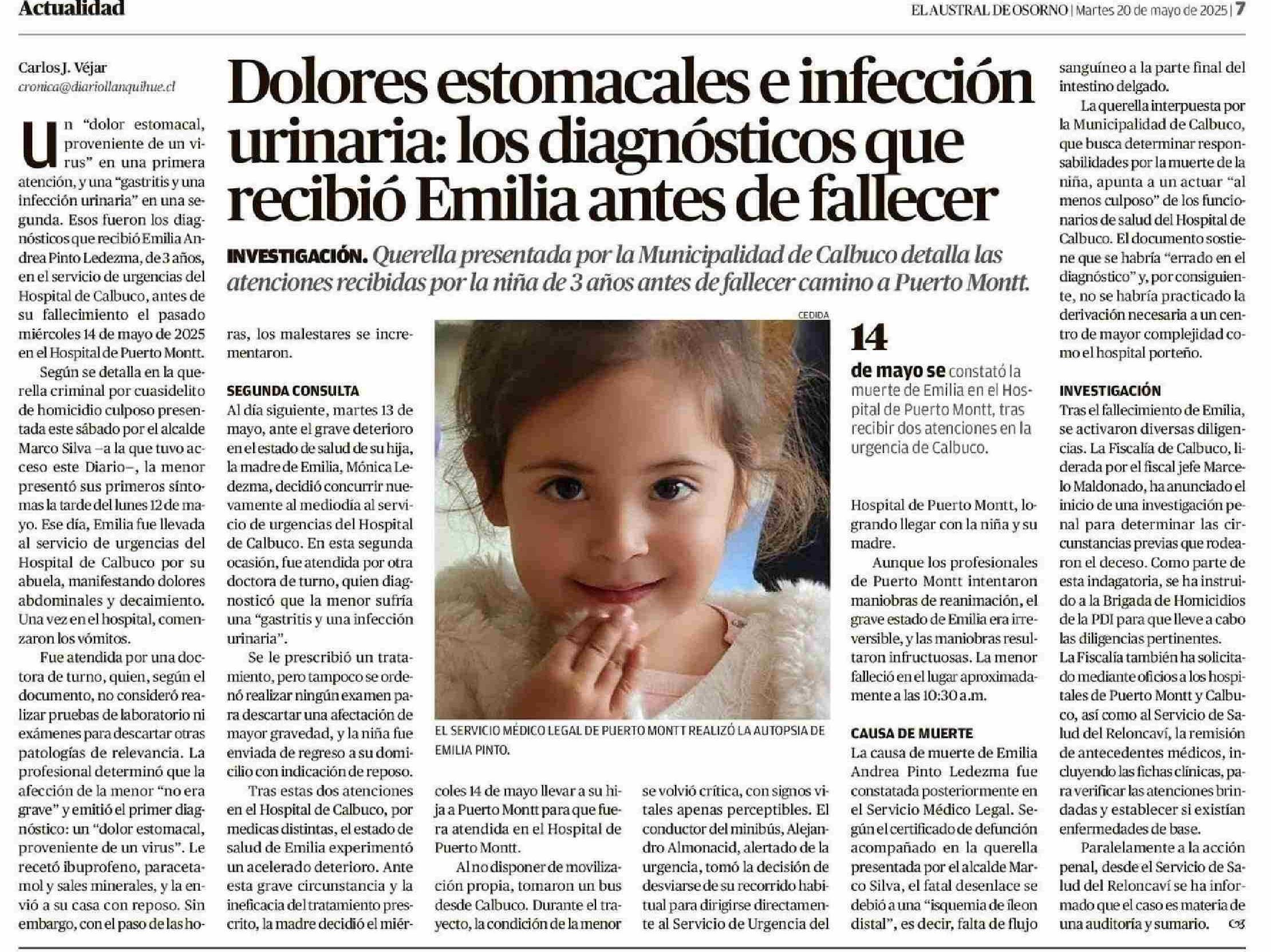 Dolores estomacales einfección “ei” urinaria: los diagnósticos que recibió Emilia antes de 20-05-2025 El Austral de Osorno |