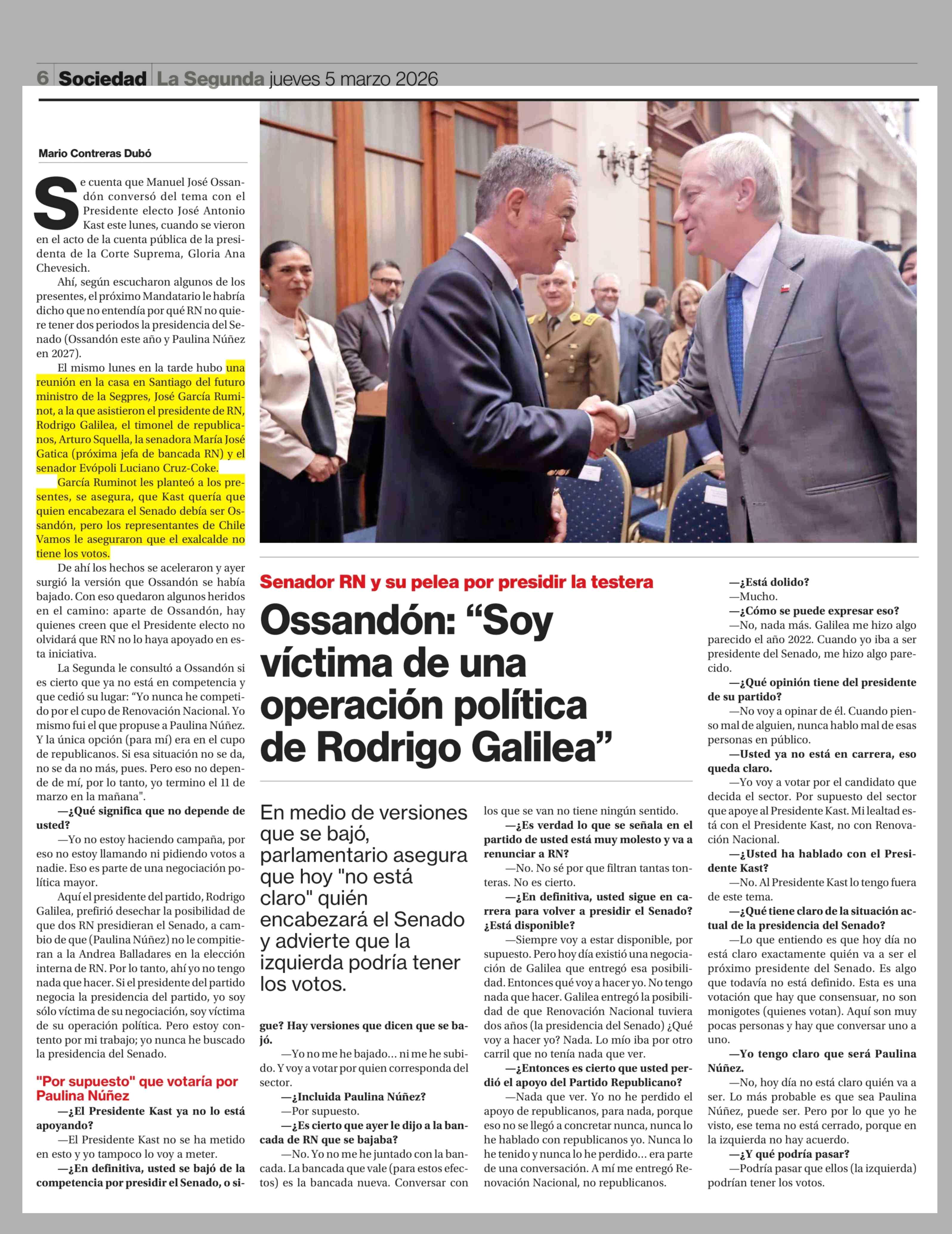 Ossandón: "Soy víctima de una operación política de Rodrigo Galilea" 05-03-2026 La Segunda |