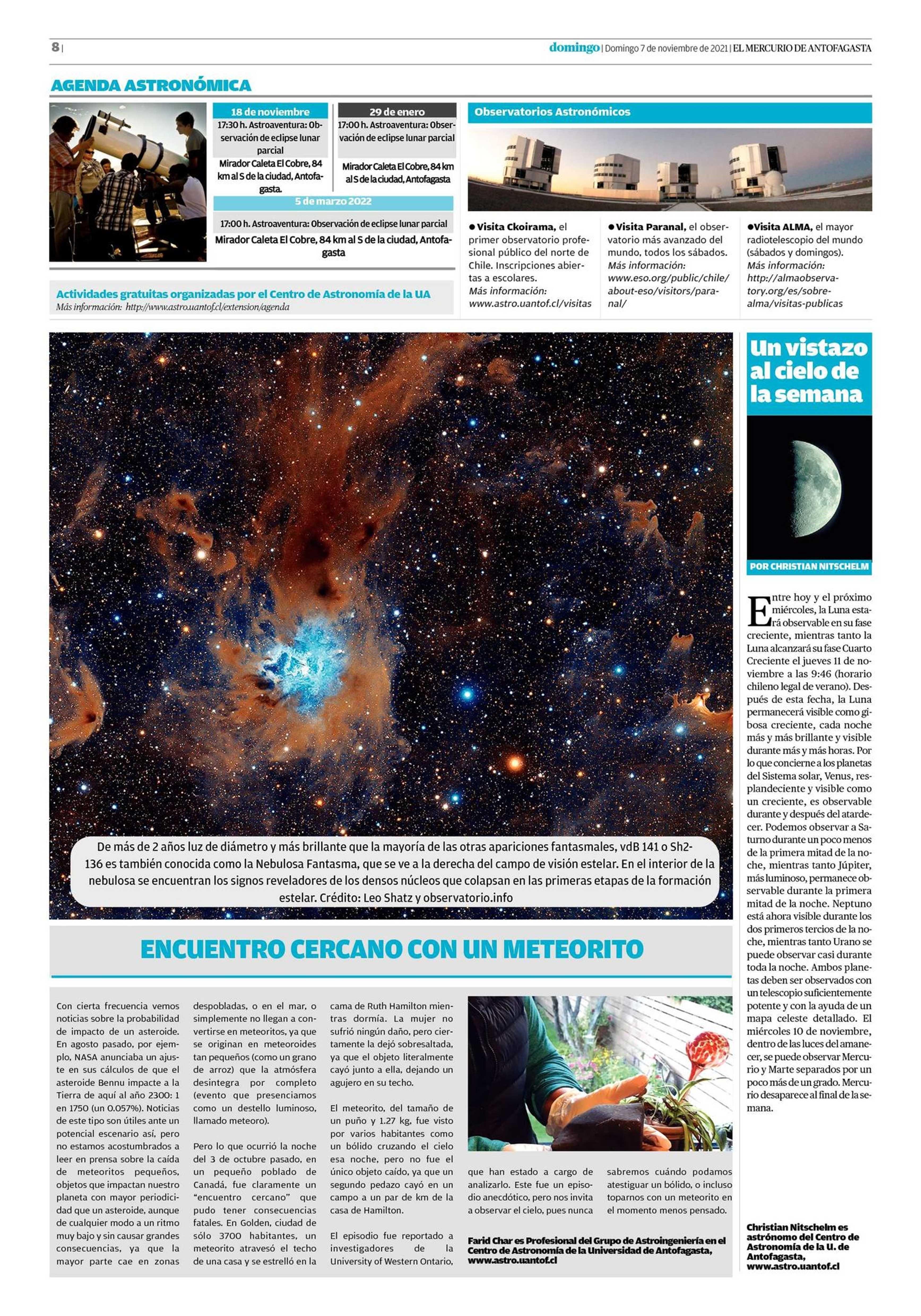 AGENDA ASTRONÓMICA 07-11-2021 El Mercurio de Antofagasta |
