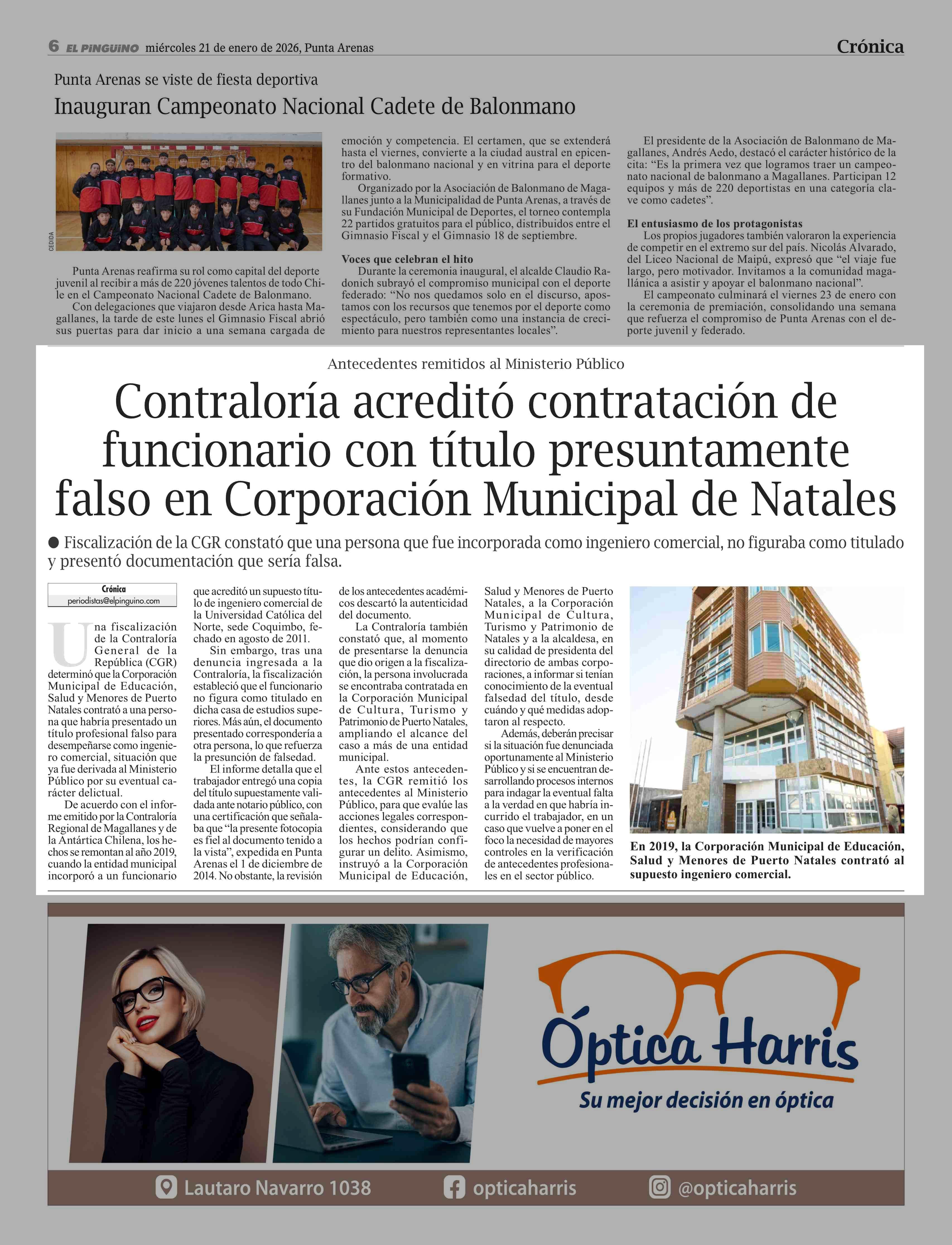 Contraloría acreditó contratación de funcionario con título presuntamente falso en Corporación Municipal de Natales 21-01-2026 El Pingüino |