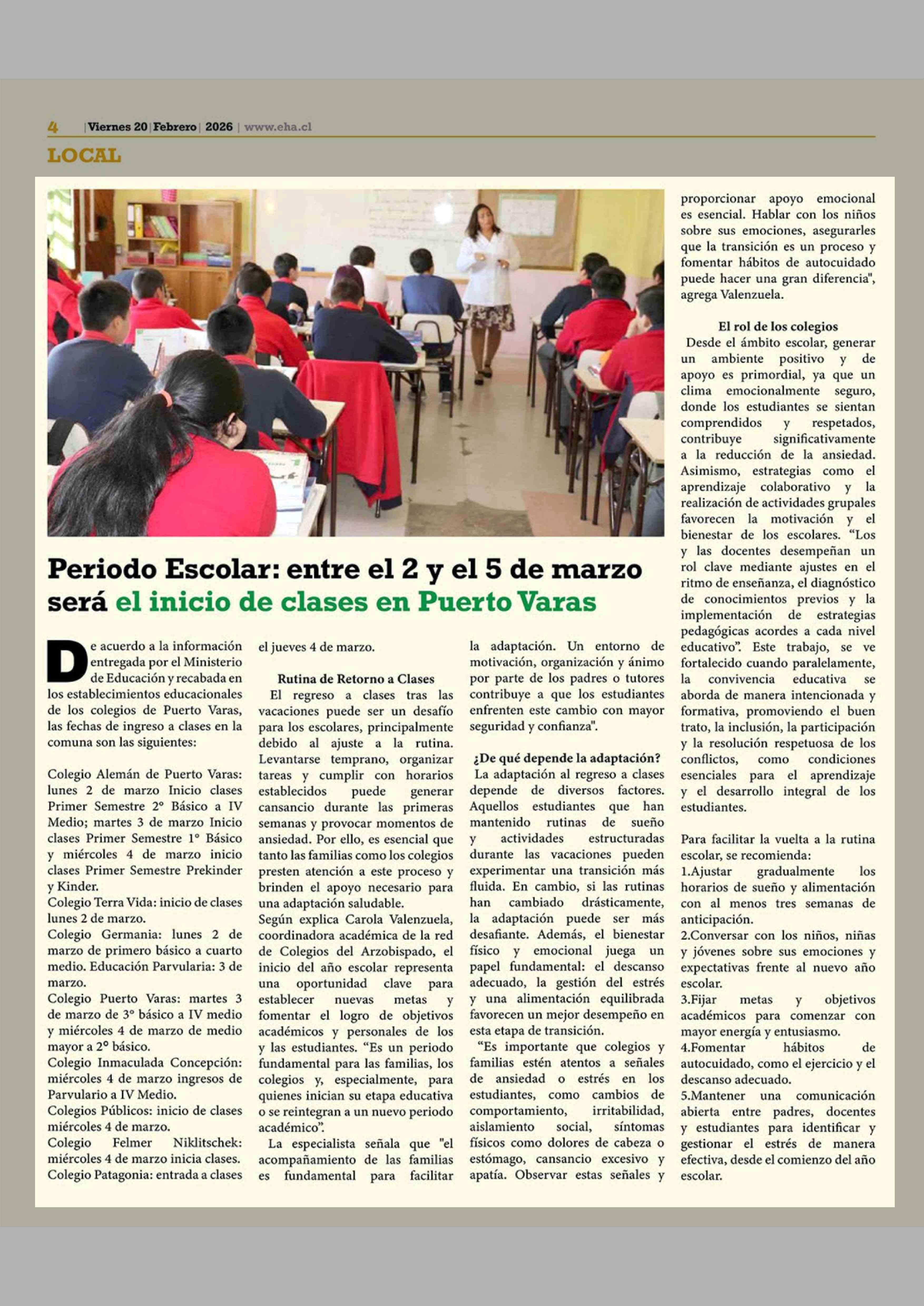 Título: Periodo Escolar: entre el 2 y el 5 de marzo será el inicio de clases en Puerto Varas