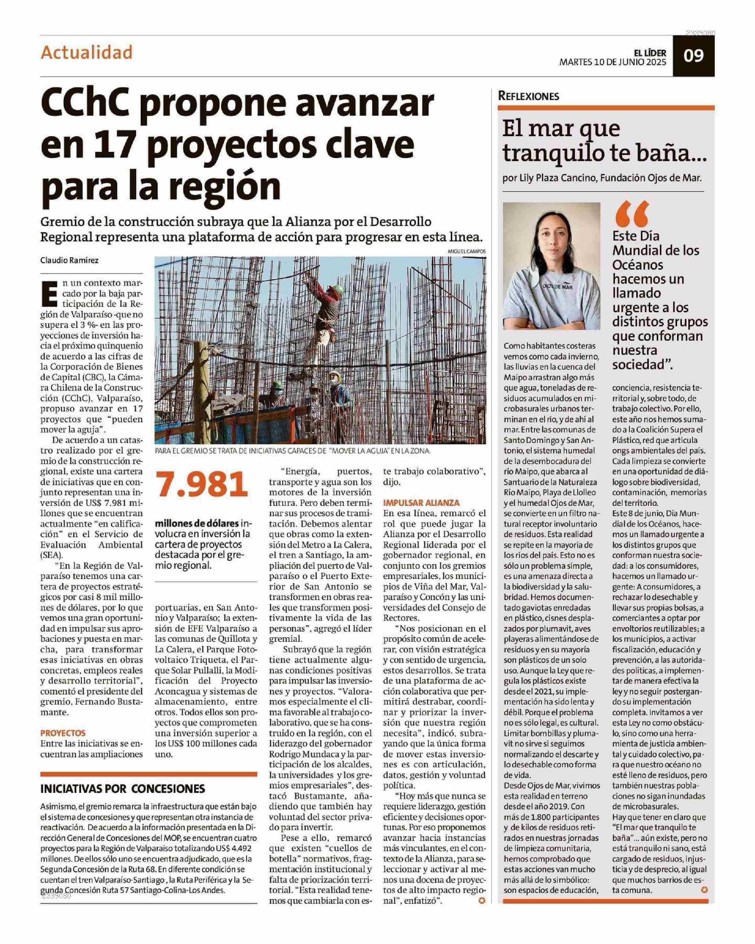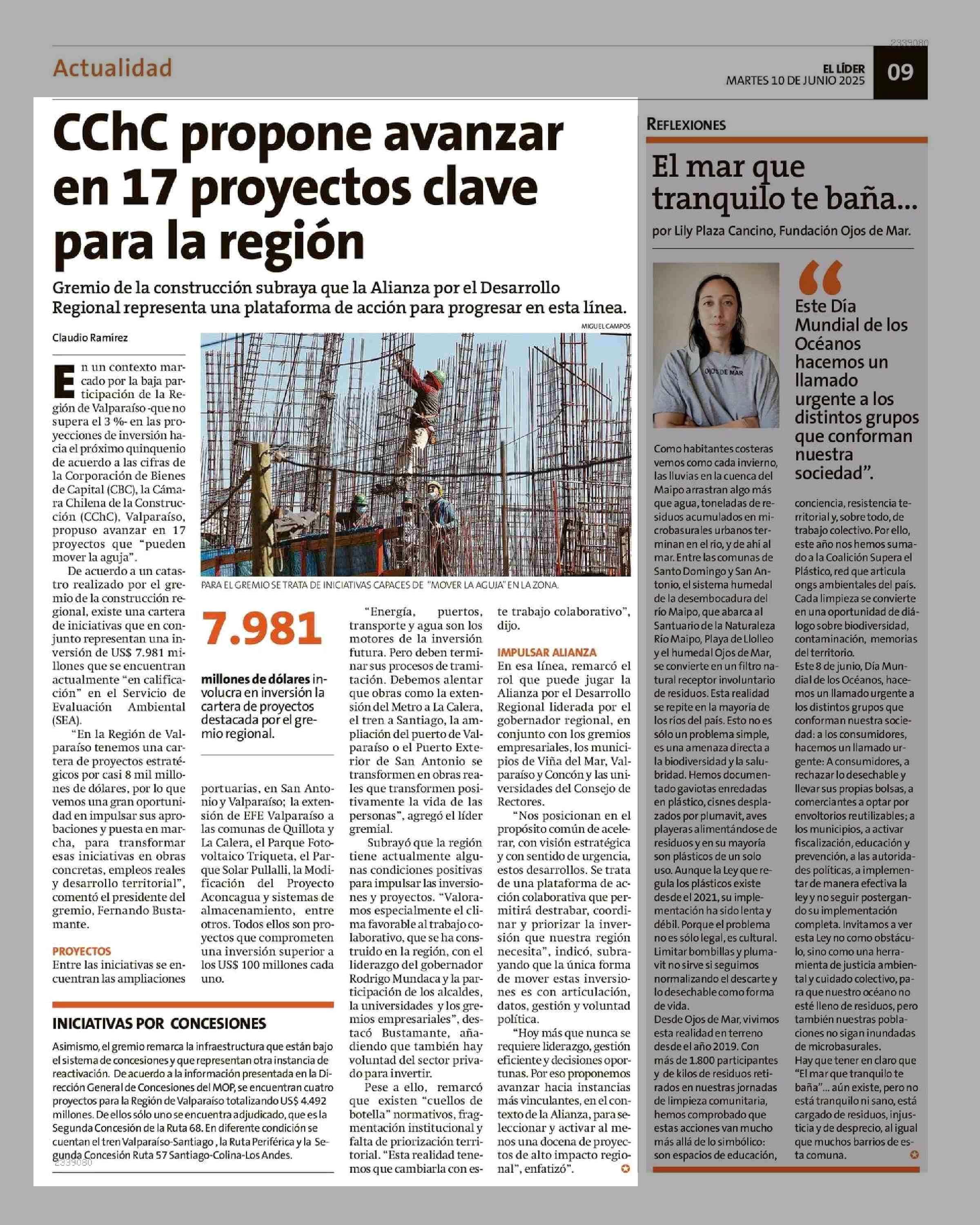 CChC propone avanzar en 17 proyectos clave para la región 10-06-2025 El Líder |