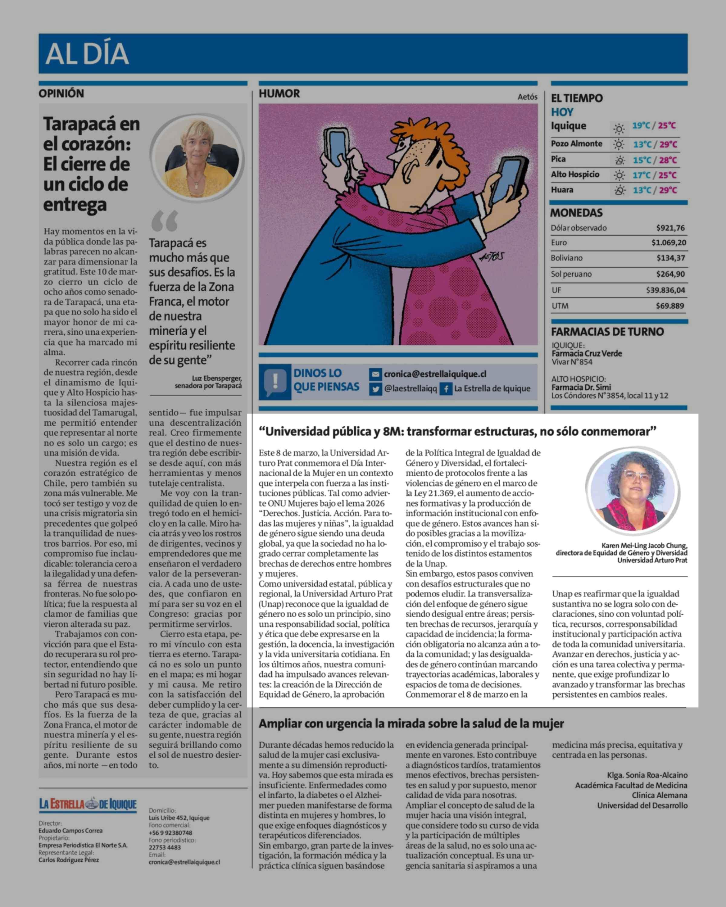 Fecha: 08-03-2026 Sector: Columnas de Opinión Región: Región de Tarapacá