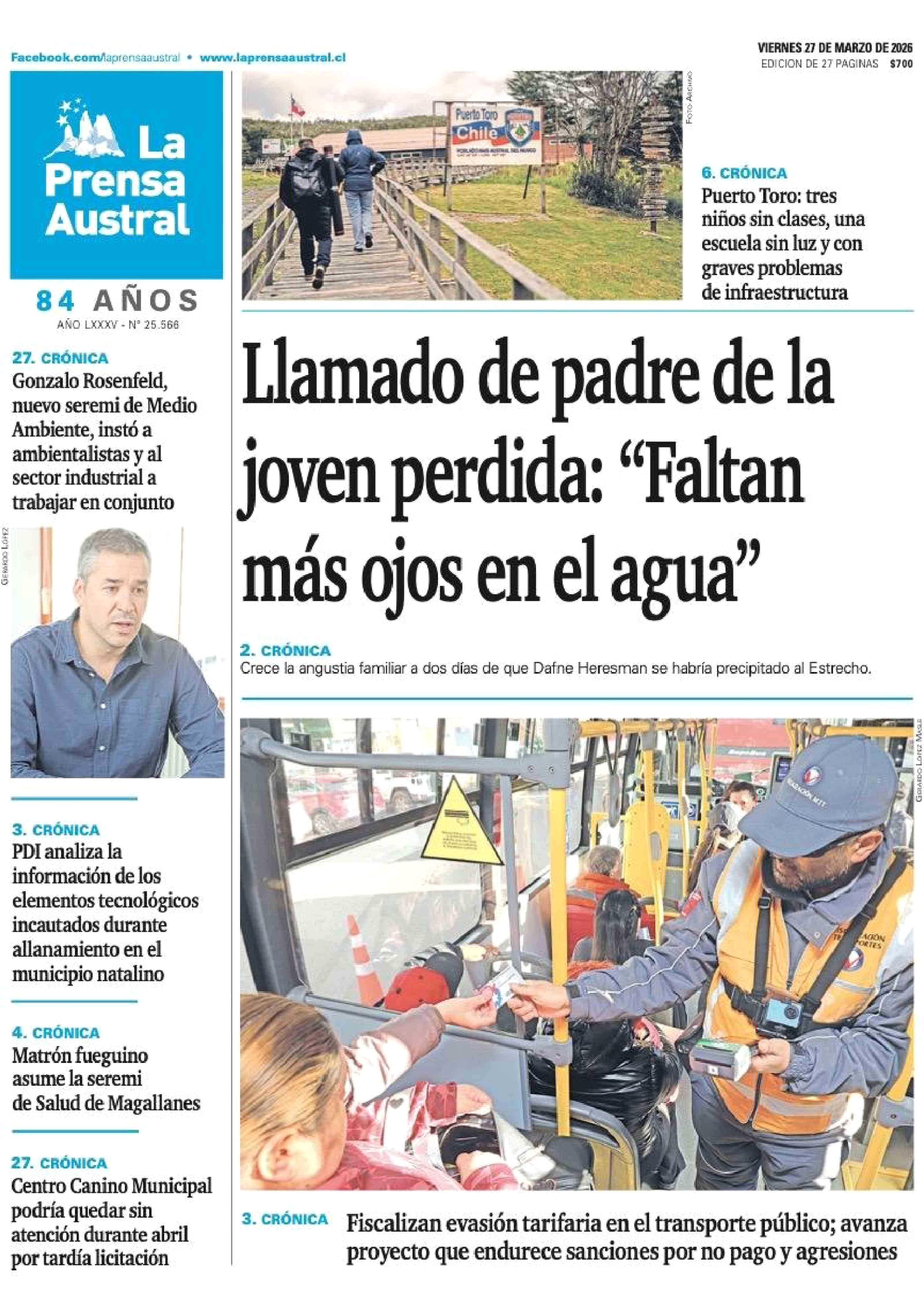 | Fecha: | 27-03-2026 | Sector: | Portada | Región: | Región de Magallanes y de la Antártica Chilena |