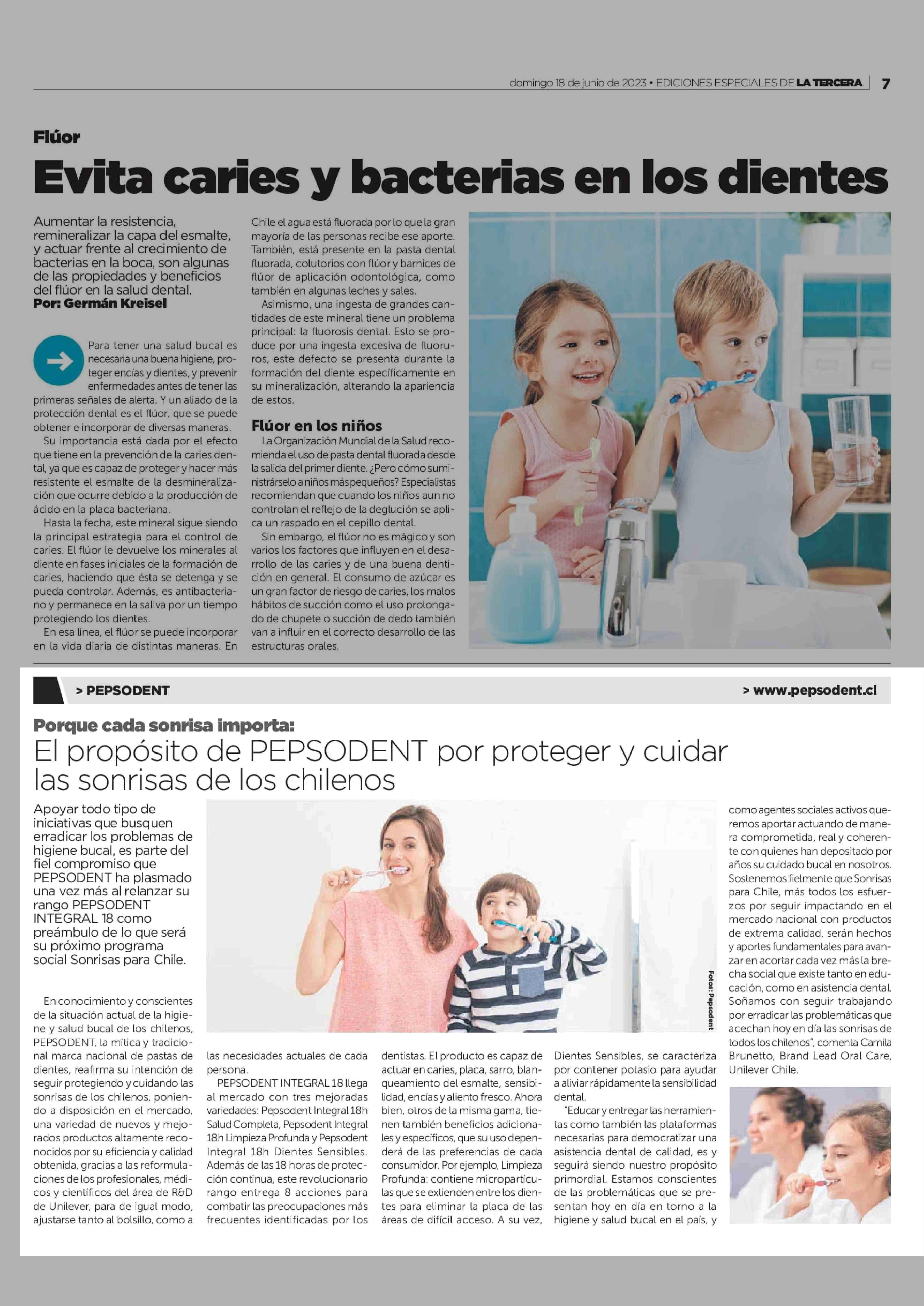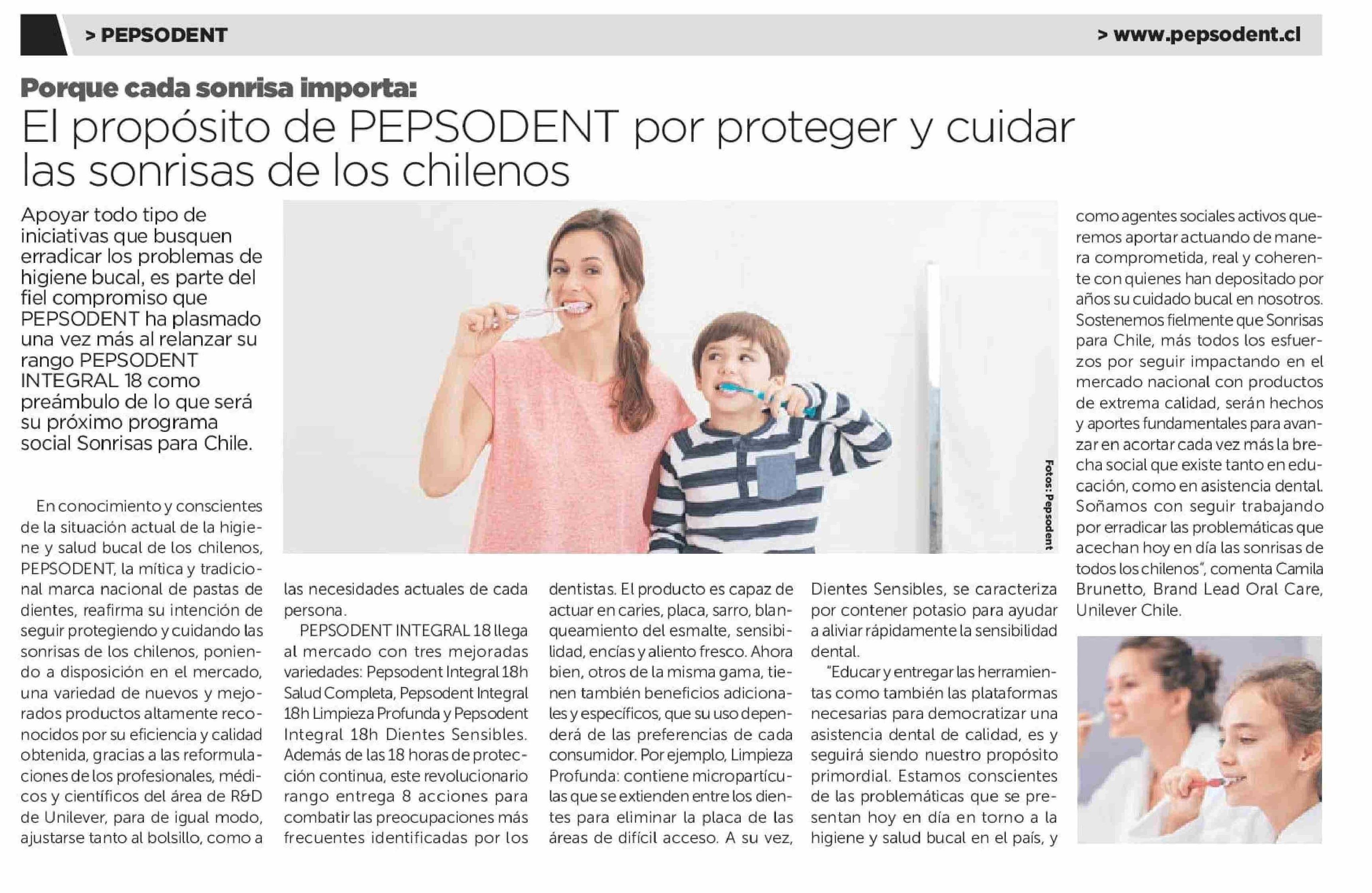 El propósito de PEPSODENT por proteger y cuidar as sonrisas de los chilenos 18-06-2023 La Tercera |