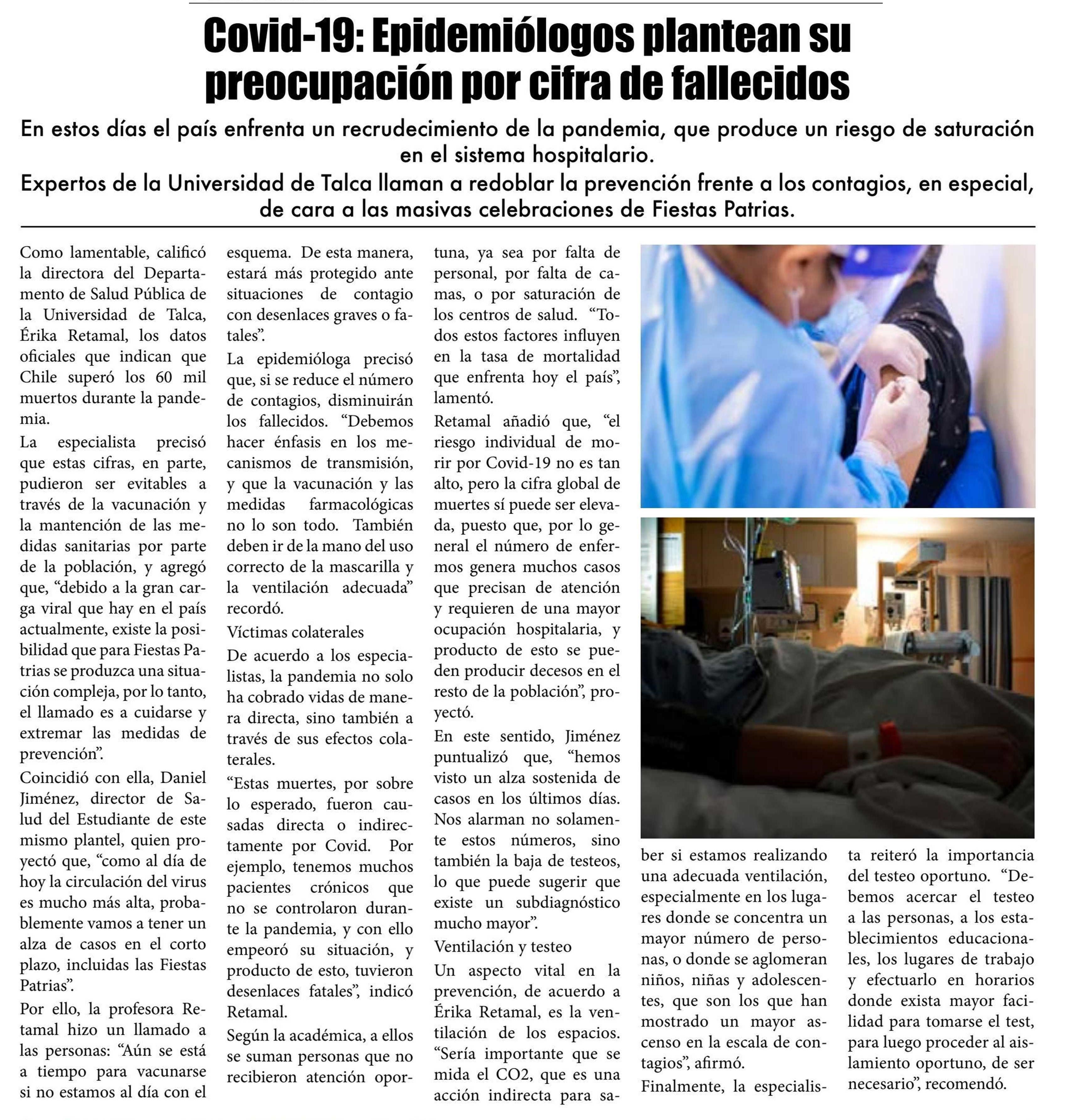 Covid-19: Epidemiólogos plantean su preocupación por cifra de fallecidos 23-08-2022 El Lector |