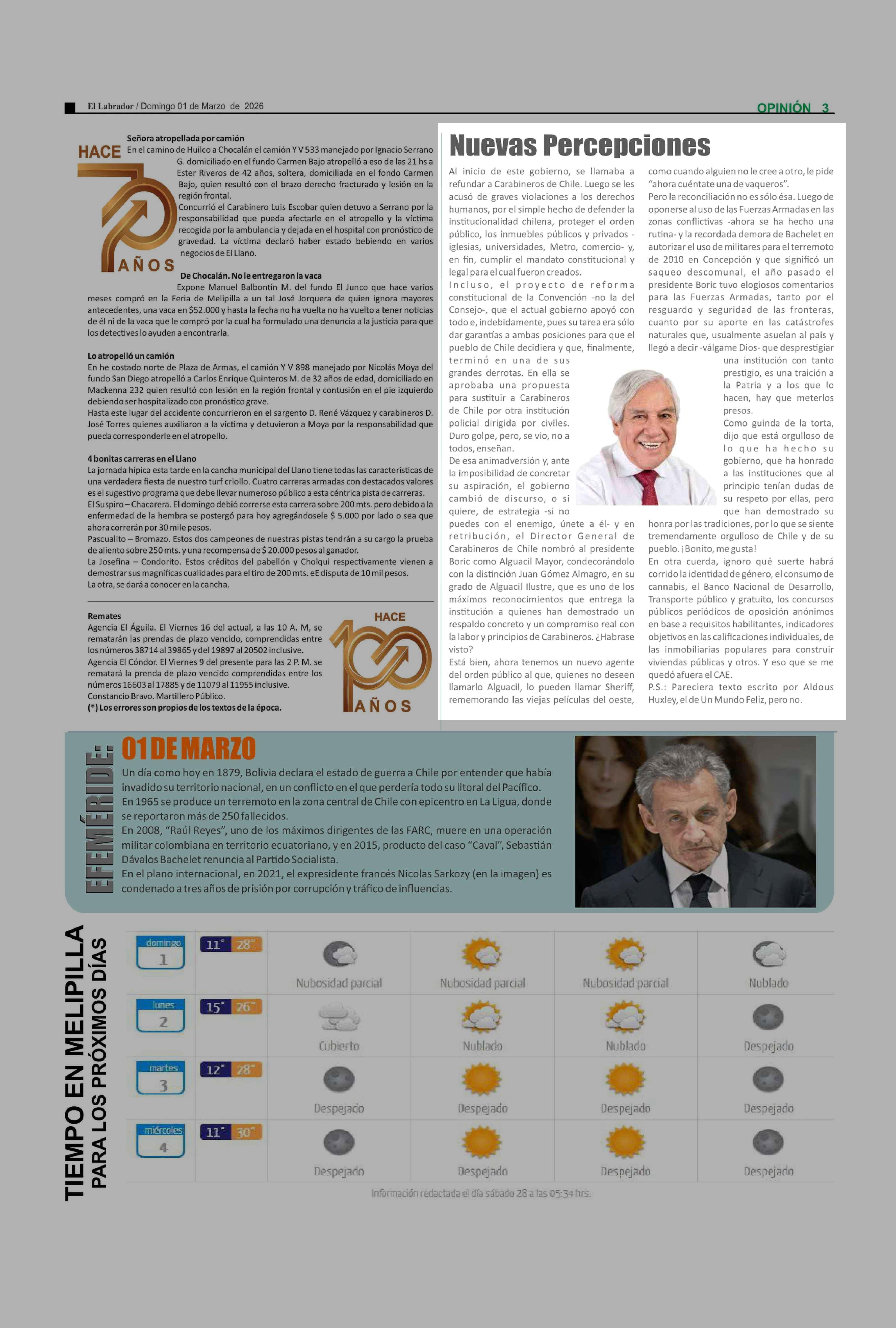 Columnas de Opinión: Nuevas Percepciones 01-03-2026 El Labrador |