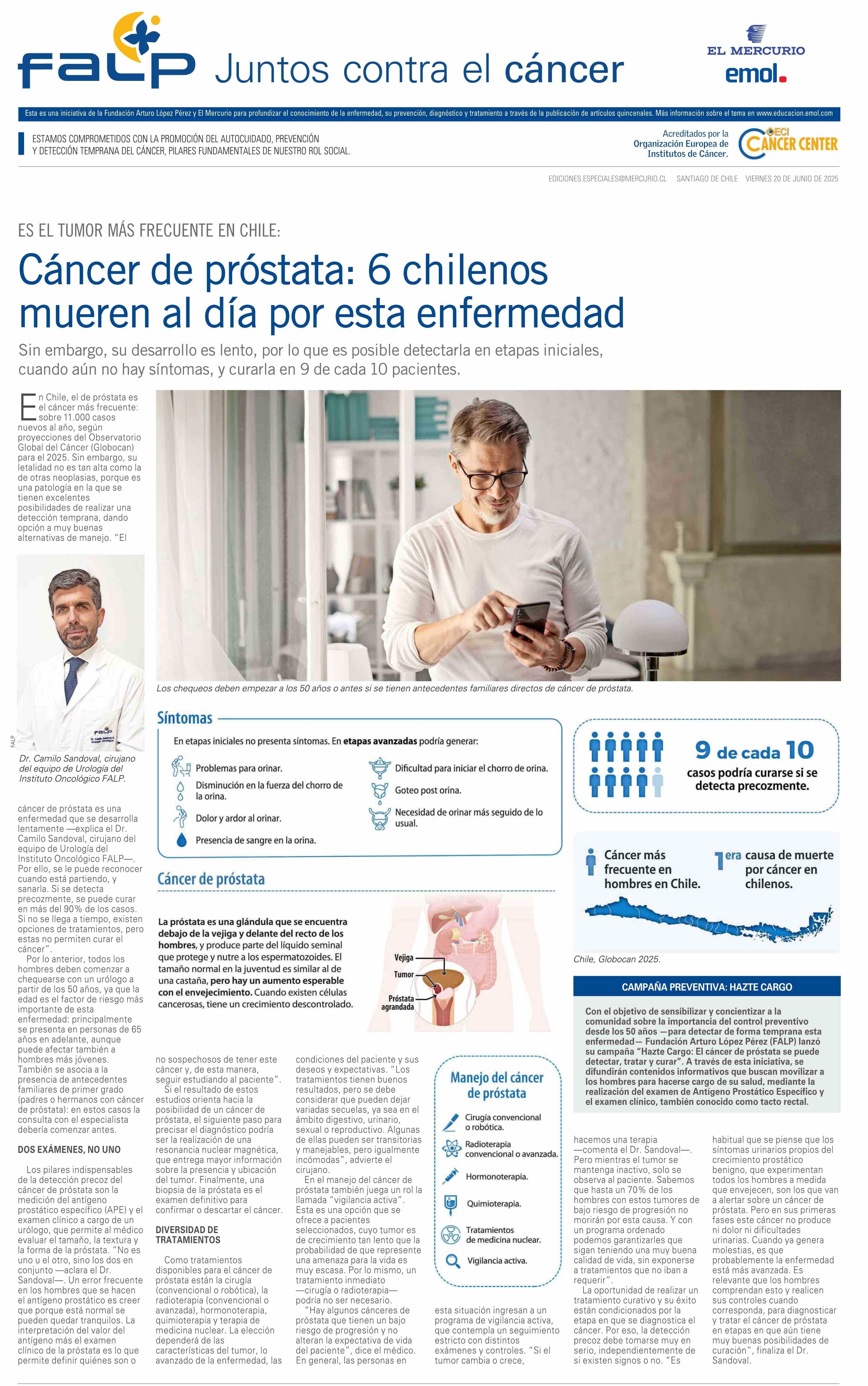 Cáncer de próstata: 6 chilenos mueren al día por esta enfermedad 20-06-2025 El Mercurio |