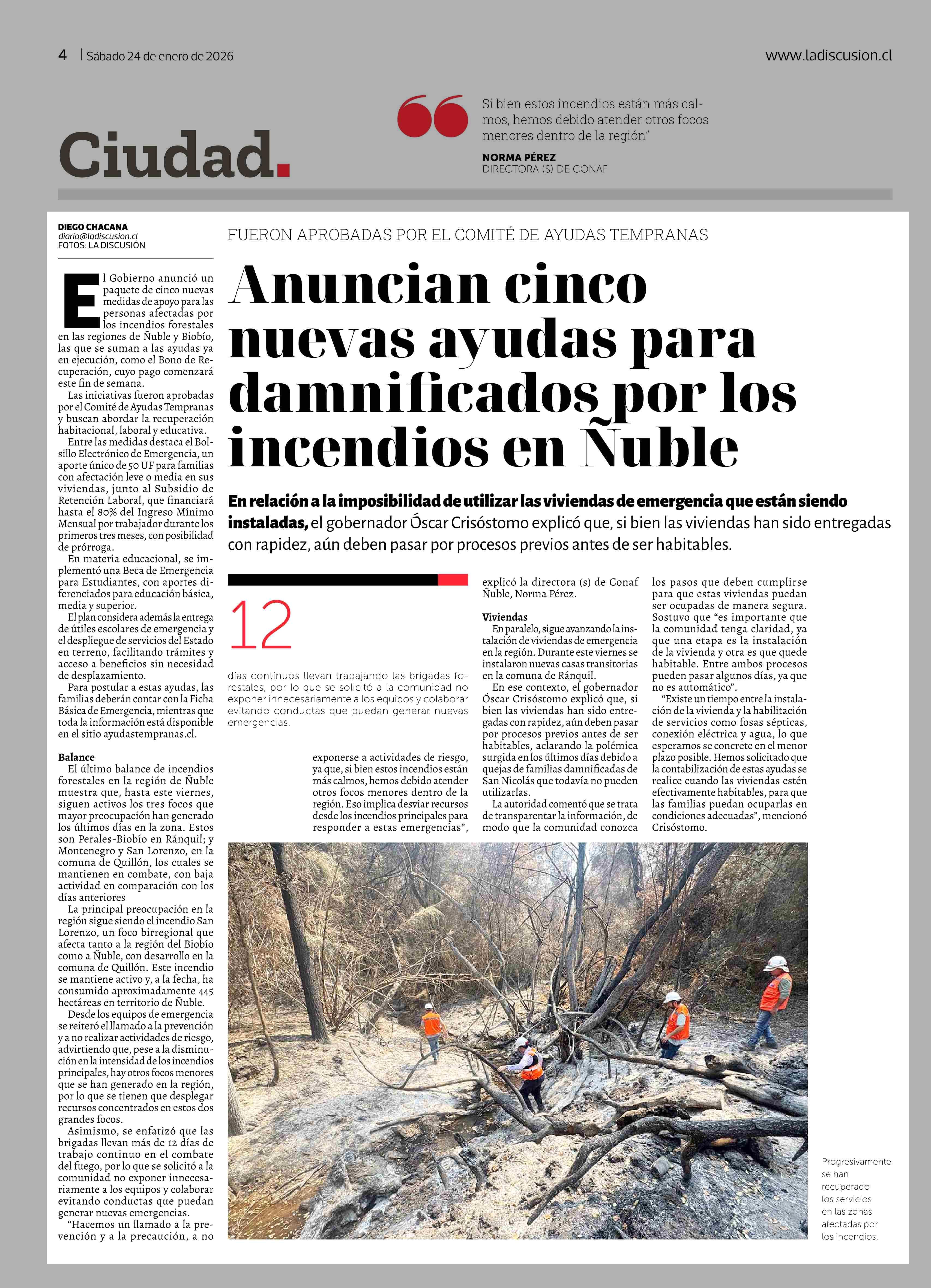 Anuncian cinco nuevas ayudas para damnificados por los incendios en Nuble 24-01-2026 La Discusión |