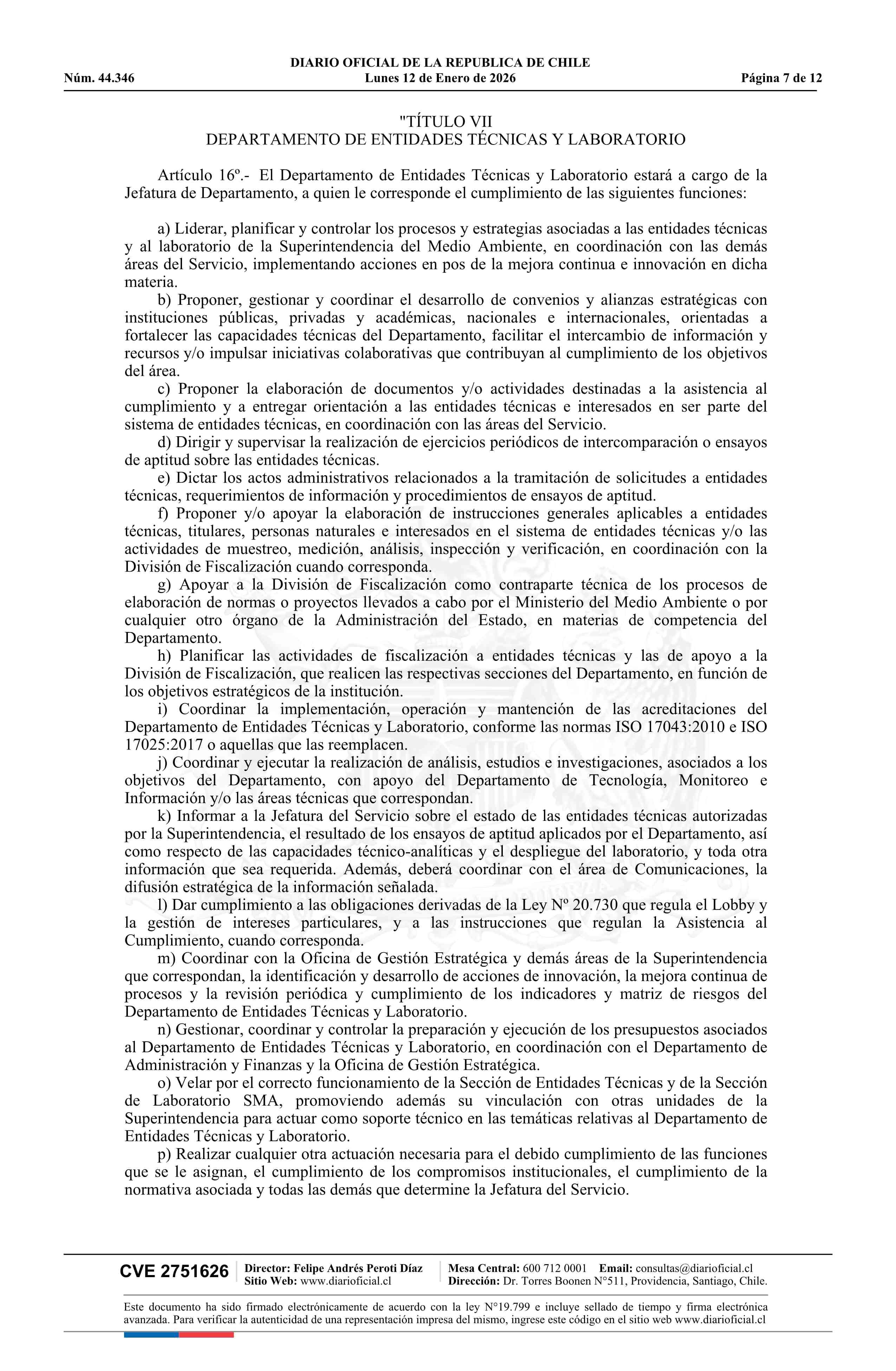 Fuente: Diario Oficial Edición Electrónica (Diario Oficial de Chile - 1 Normas Generales) Página(s): 60-71