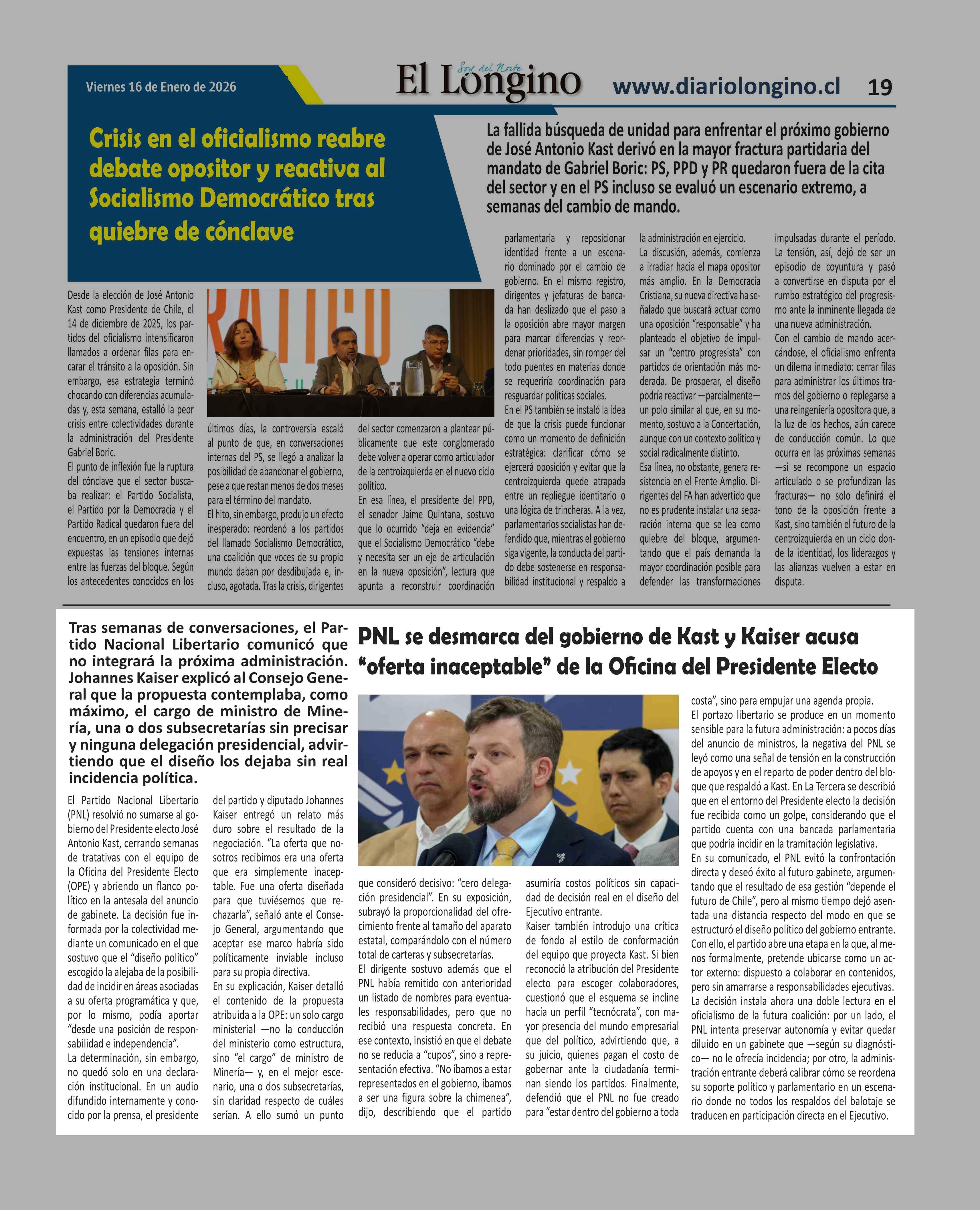 Título: PNL se desmarca del gobierno de Kast y Kaiser acusa "oferta inaceptable" de la Oficina del Presidente Electo