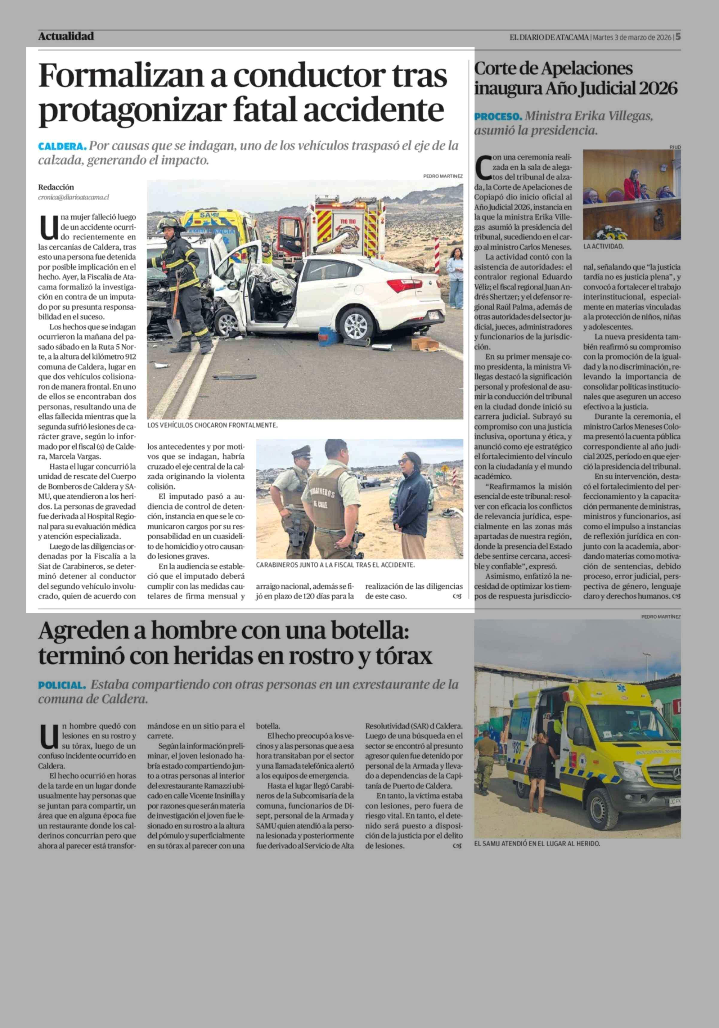 Formalizan a conductor tras protagonizar fatal accidente 03-03-2026 El Diario de Atacama |