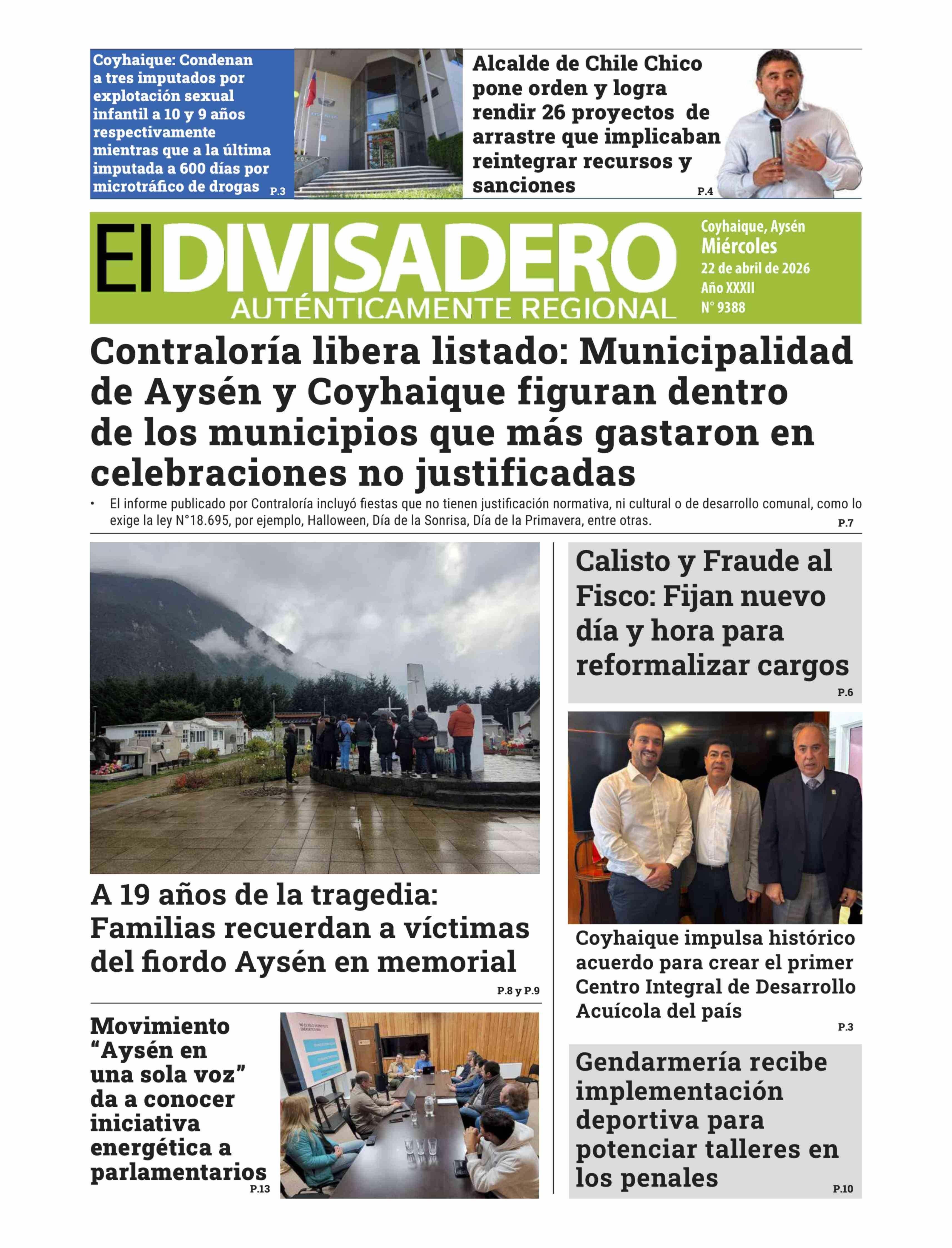 Fecha: 22-04-2026 Sector: Portada Región: Región Aysén del General Carlos Ibáñez del Campo