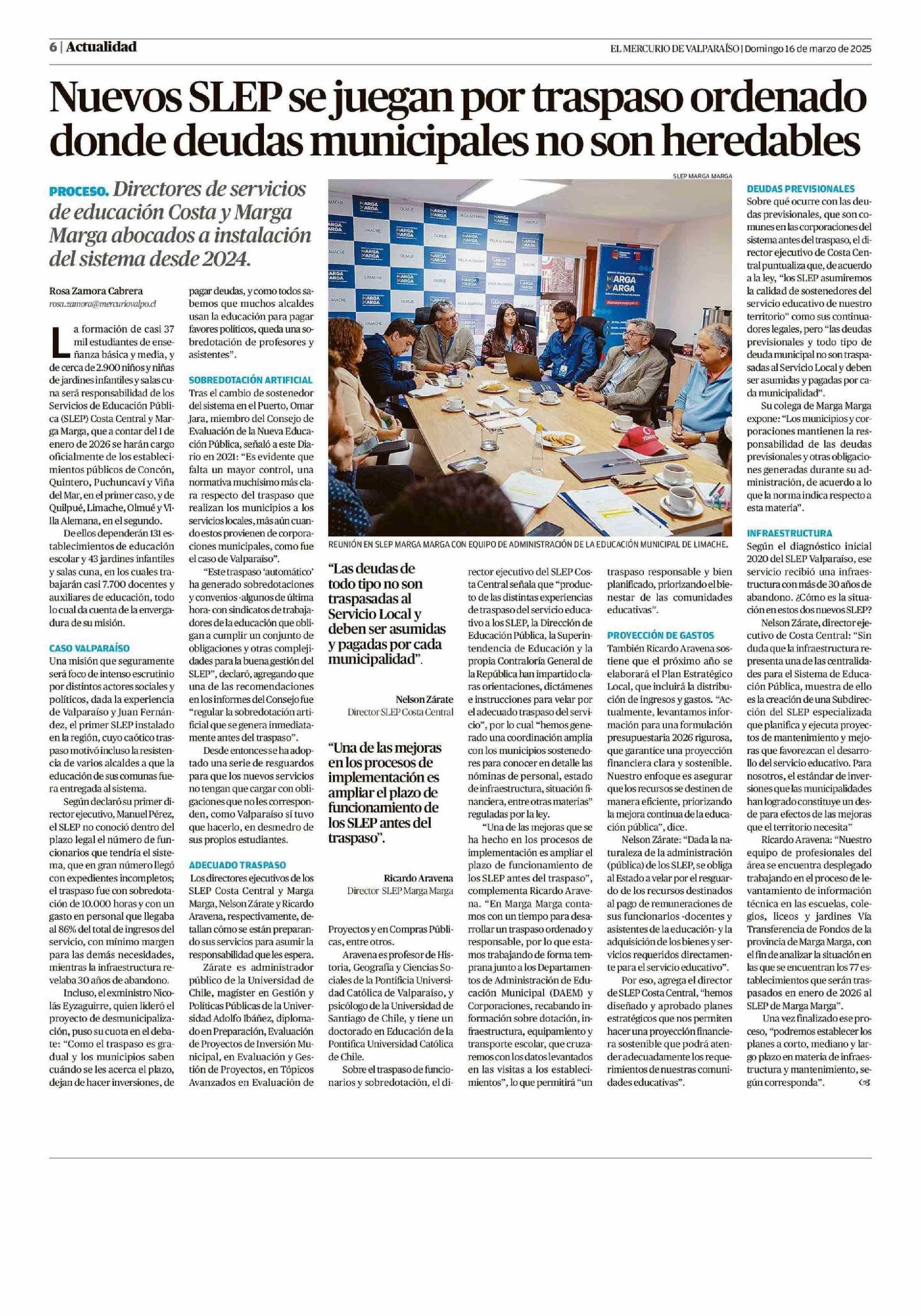 Nuevos SLEP se juegan por traspaso ordenado donde deudas municipales no son heredables 16-03-2025 El Mercurio de Valparaíso |