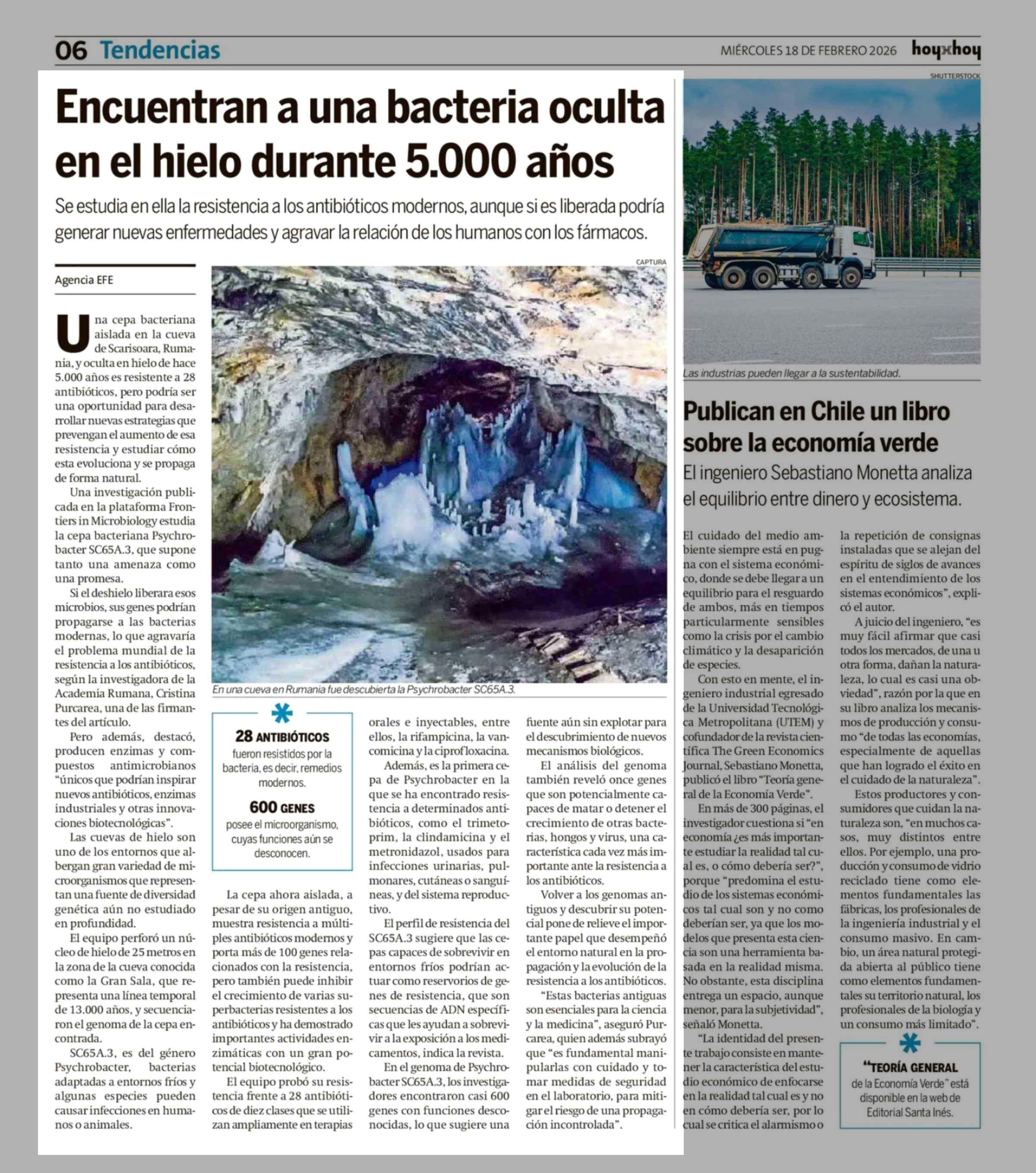 Encuentran a una bacteria oculta en el hielo durante 5.000 años 18-02-2026 Hoy x Hoy |