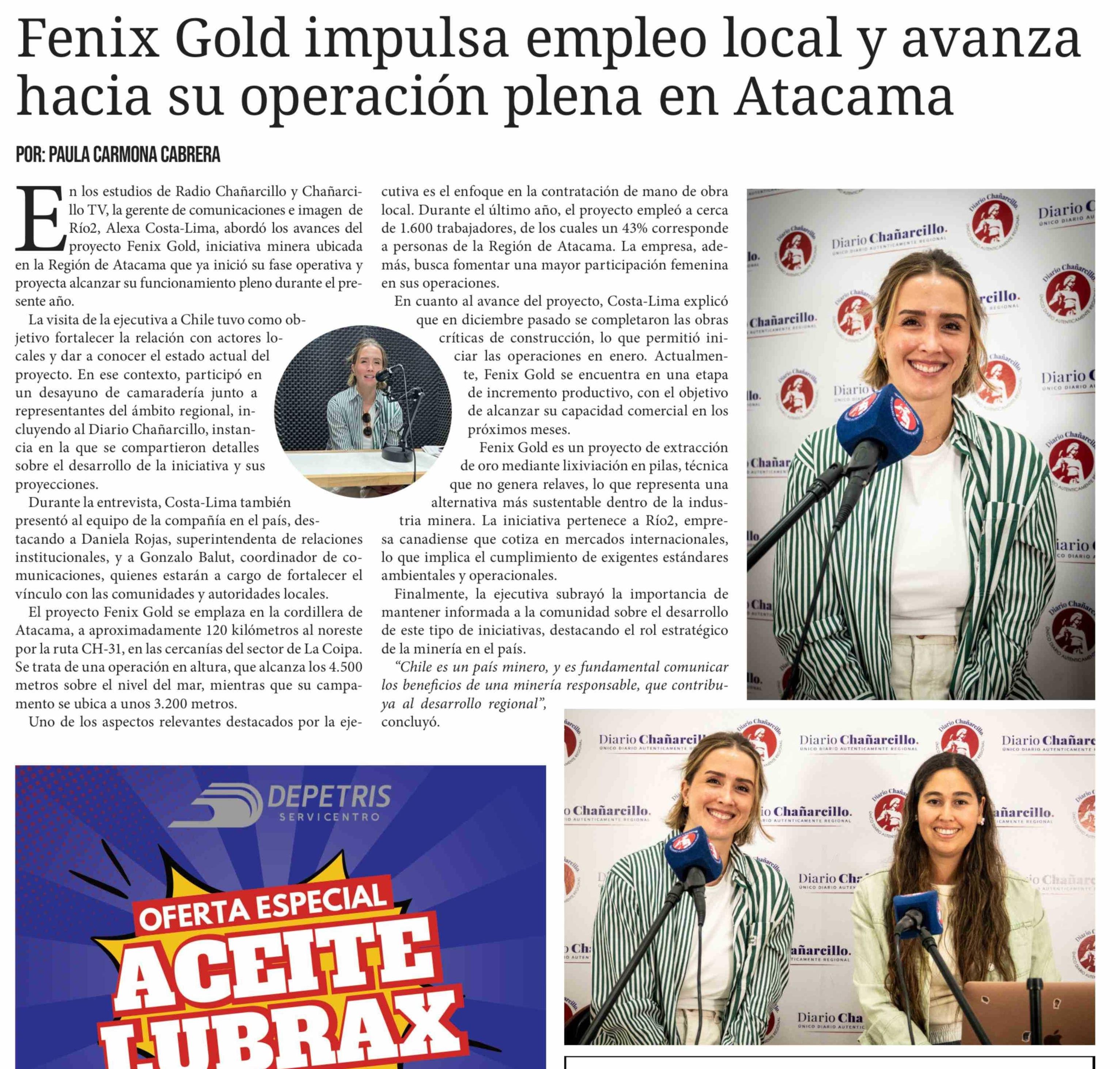 | Título: | Fenix Gold impulsa empleo local y avanza hacia su operación plena en Atacama |